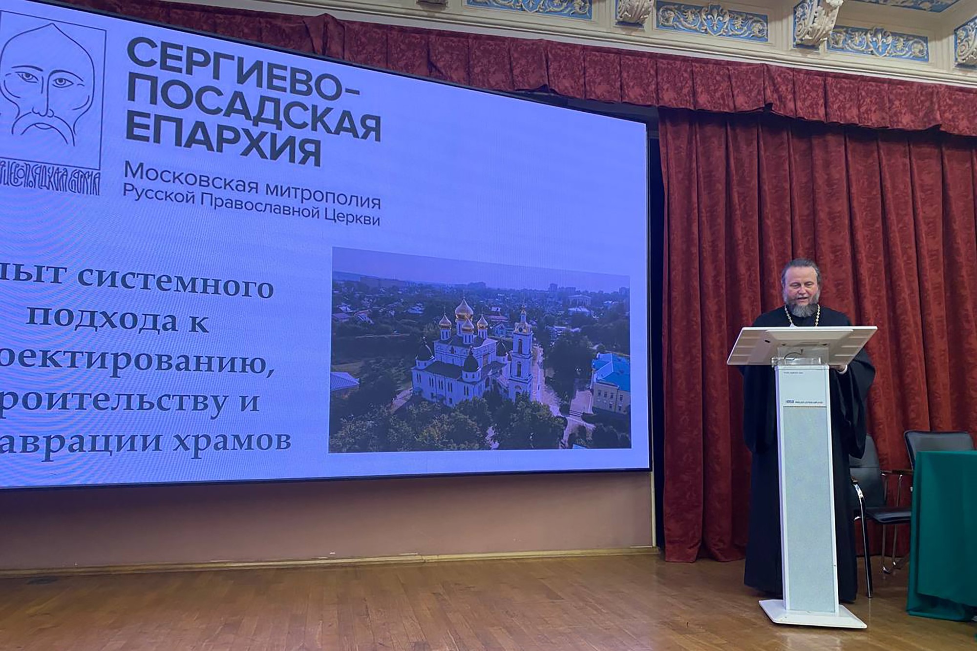 На конференции протоиерей Афанасий Чорногуз выступил с докладом на тему «Опыт системного подхода к проектированию и строительству храмов Сергиево-Посадской епархии».