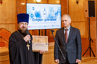 Настоятель Сергиевского храма д. Костино иерей Виктор Селезнёв в ответном слове рассказал об основных этапах создания доступной среды в храме, о взаимодействии и консультировании в строительстве с руководителем общественной организации «Колесница» И. А. Гундеровым.