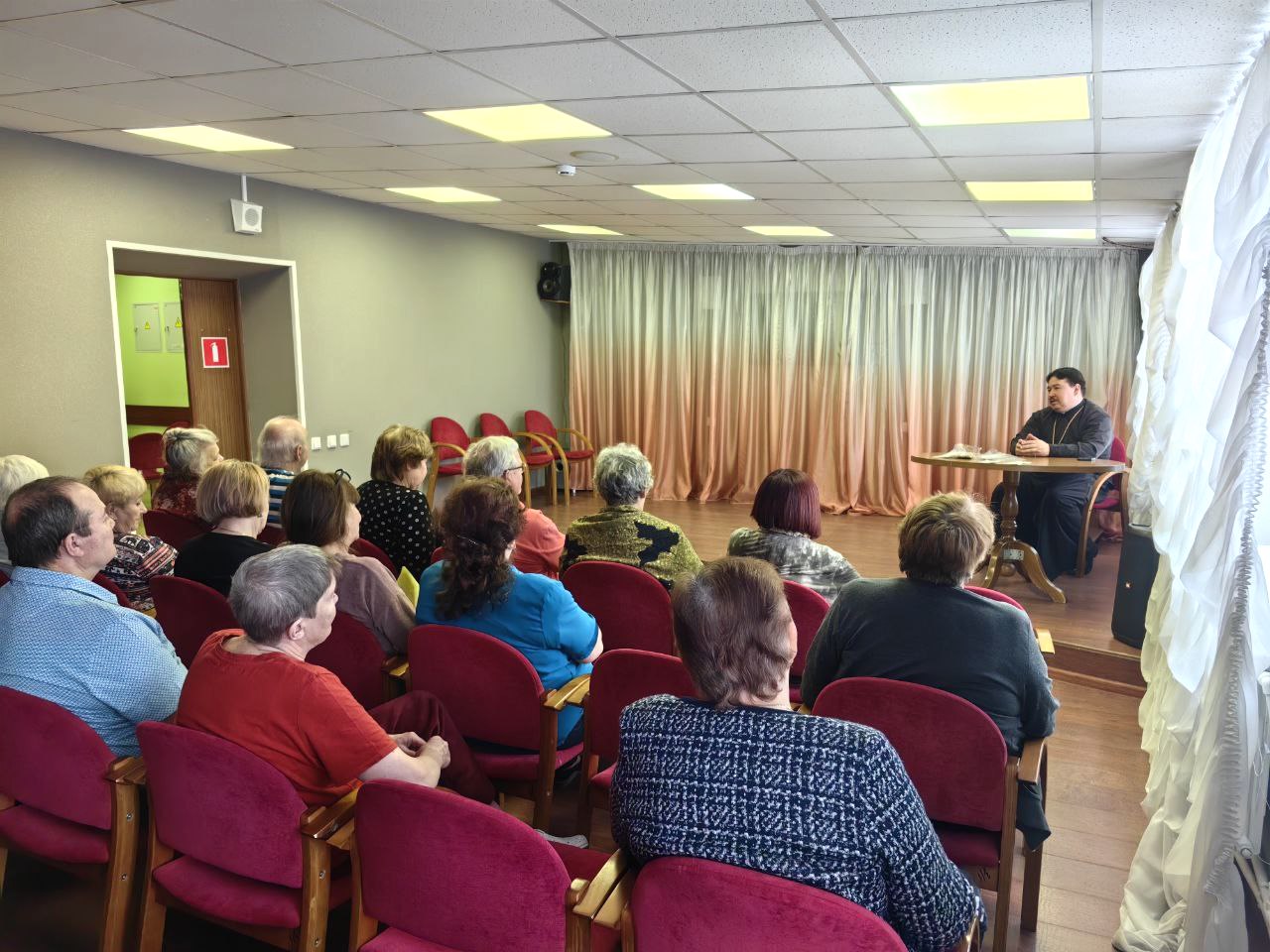 27 января в отделении «Социально-оздоровительный центр» комплексном центре социального обслуживания и реабилитации «Коломенский» ответственный в Озёрском благочинии по церковной благотворительности и социальному служению иерей Арсений Писаревский провел встречу с получателями социальных услуг.
