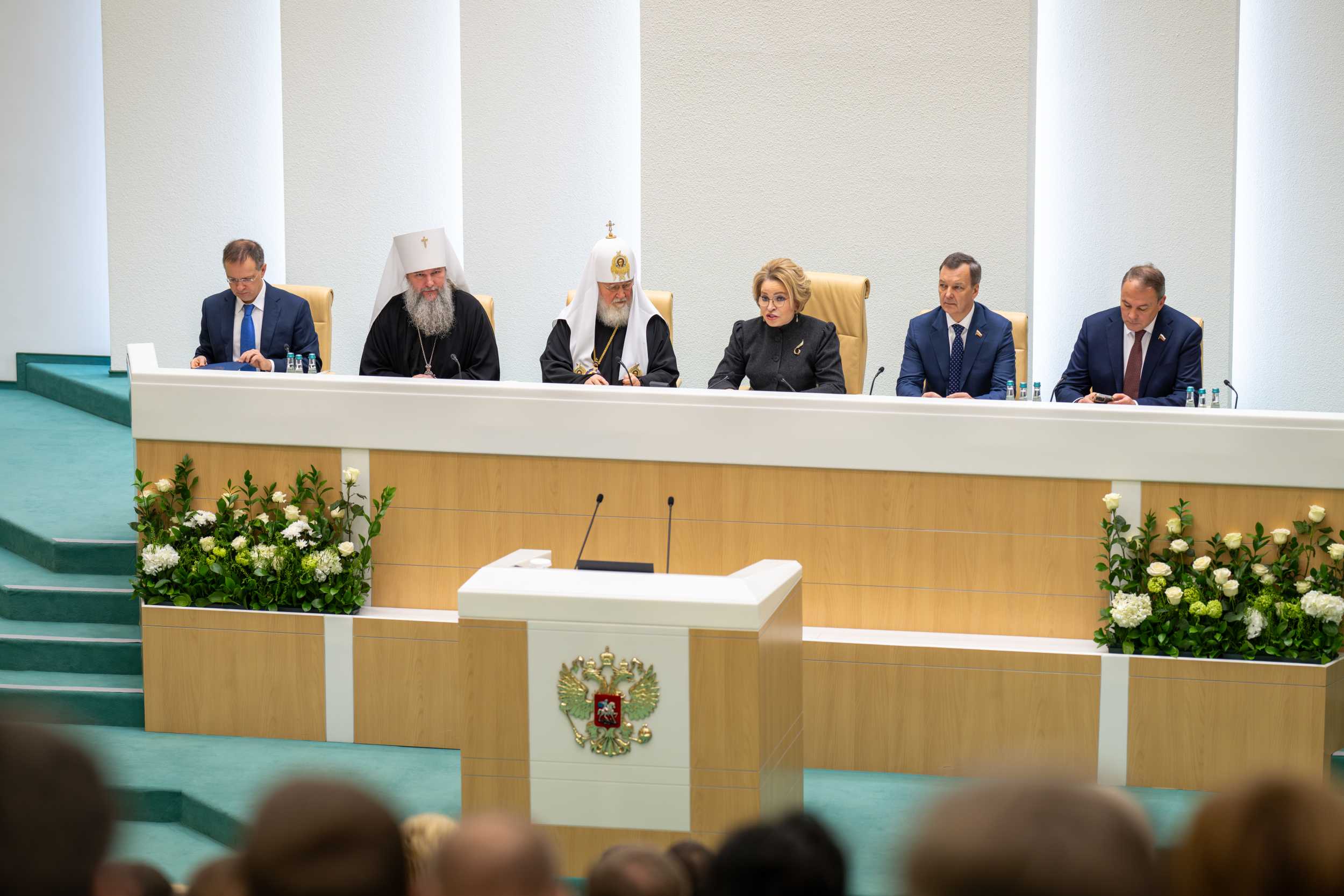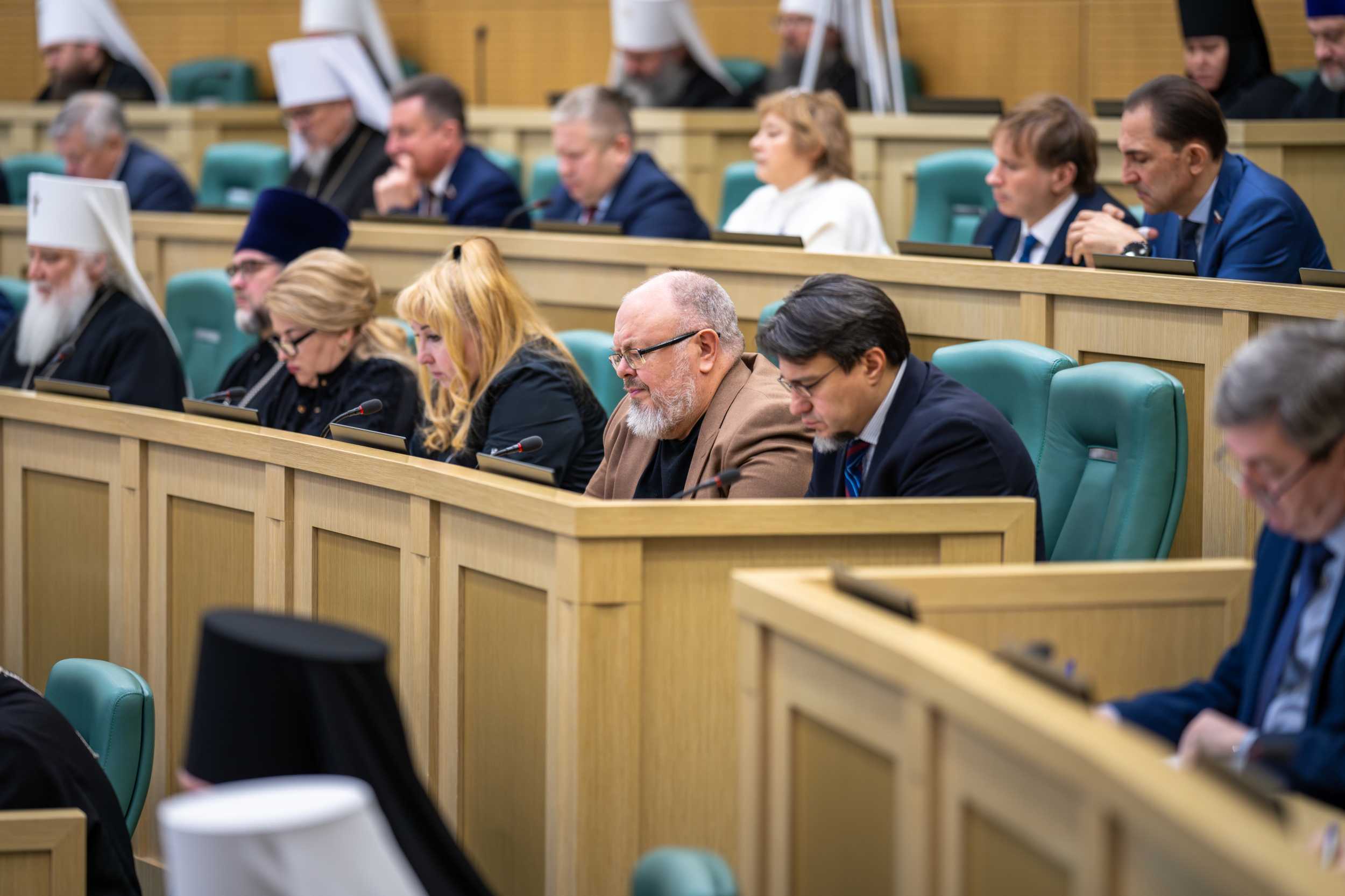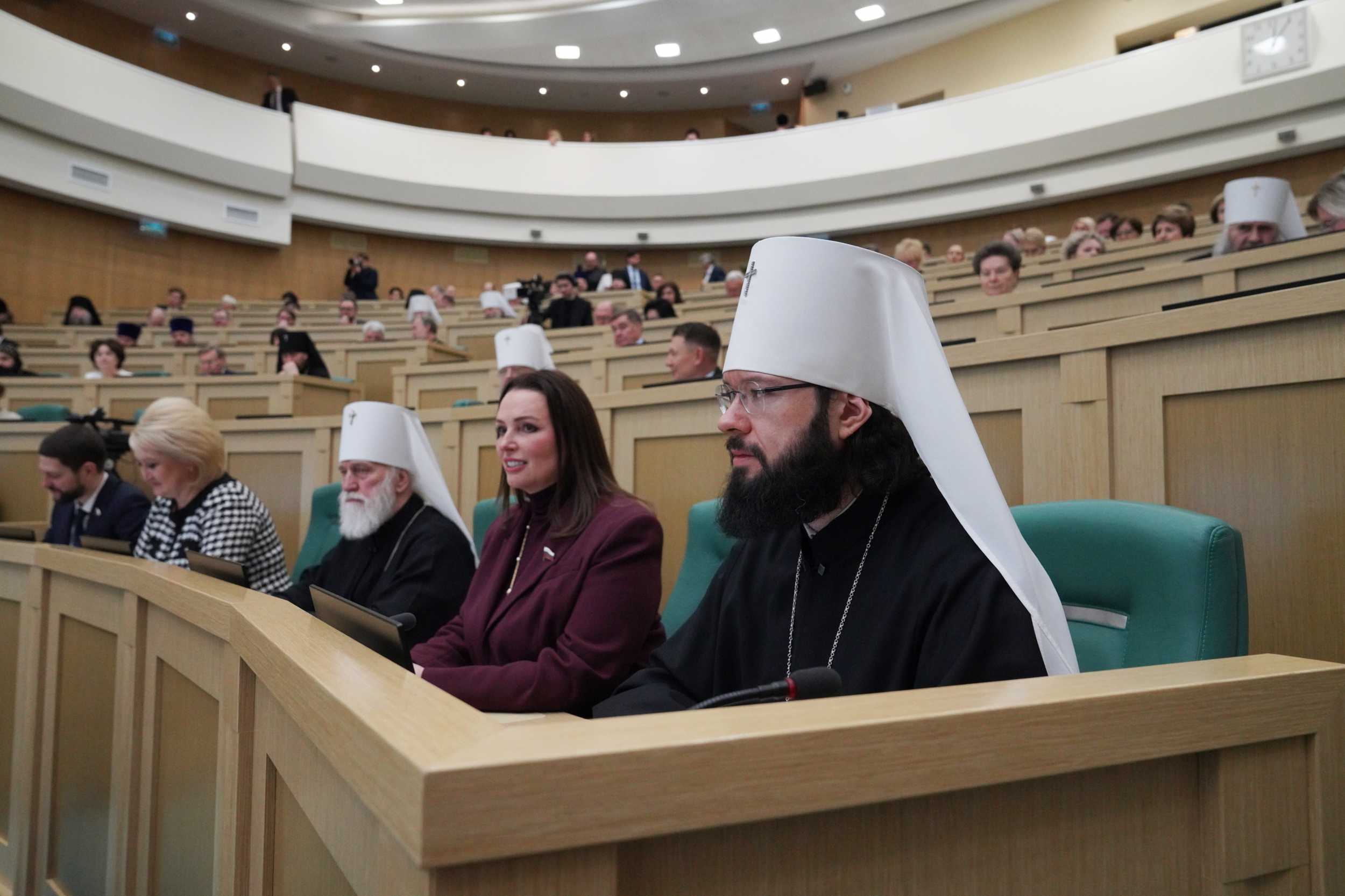 До начала пленарного заседания в Совете Федерации были проведены тематические круглые столы: «Воспитание и просвещение как инструменты формирования личности в современном обществе» (сопредседатели — председатель Комитета Совета Федерации по науке, образованию и культуре Л.С. Гумерова, председатель Синодального отдела религиозного образования и катехизации митрополит Екатеринбургский и Верхотурский Евгений); «Становление современной общественно-государственной модели воспитания гражданина и патриота (анализ опыта взаимодействия государственных и религиозных институтов)» (сопредседатели — первый заместитель председателя Комитета Совета Федерации по конституционному законодательству и государственному строительству Л.Н. Глебова и председатель Синодального миссионерского отдела архиепископ Зеленоградский Савва); «Церковь, власть и общество: поддержка участников специальной военной операции и их семей» (сопредседатели — первый заместитель председателя Комитета Совета Федерации по социальной политике Ж.Ю. Чефранова, член Комитета Совета Федерации по обороне и безопасности А.Л. Деркач, председатель Синодального отдела по взаимодействию с Вооруженными силами и правоохранительными органами, председатель Синодального комитета по взаимодействию с казачеством митрополит Ставропольский и Невинномысский Кирилл, председатель Синодального отдела по церковной благотворительности и социальному служению протоиерей Михаил Потокин).