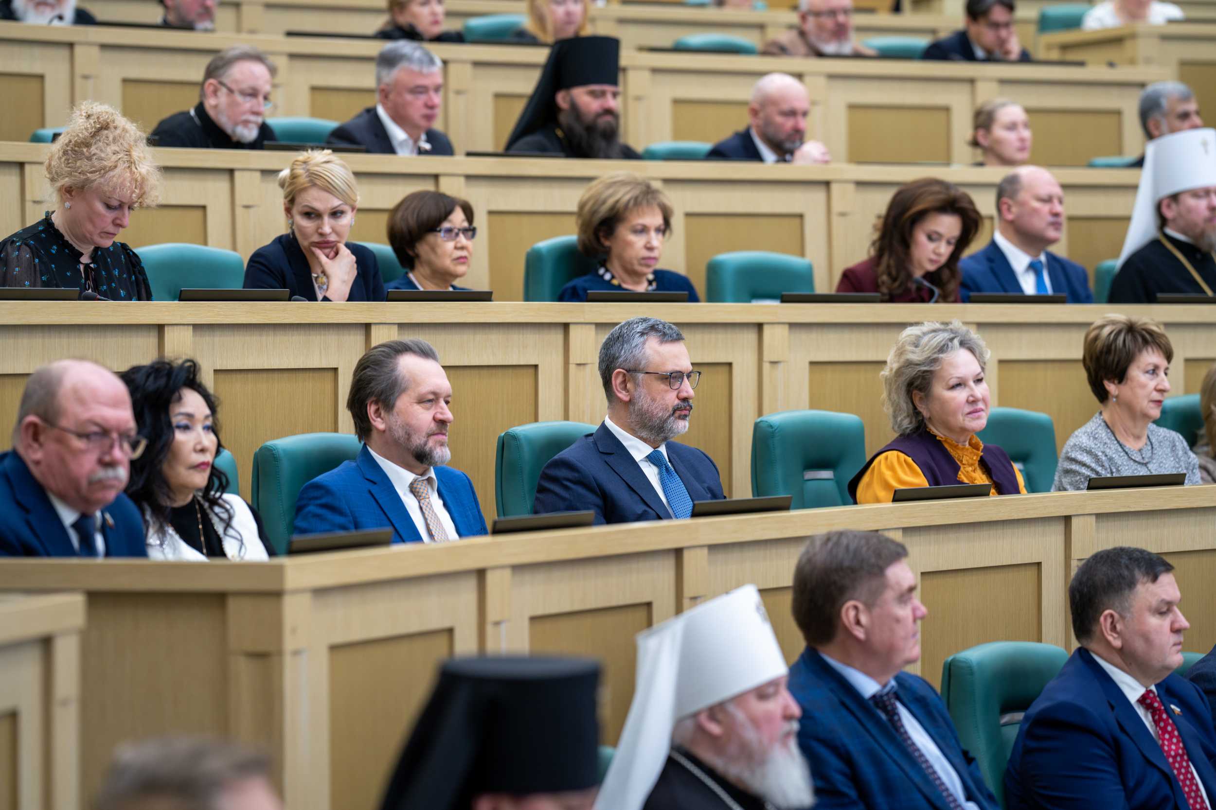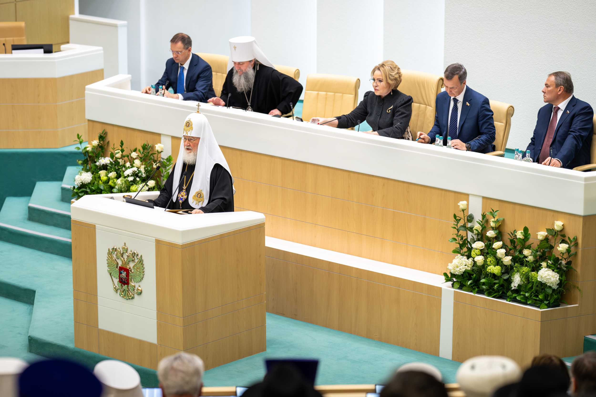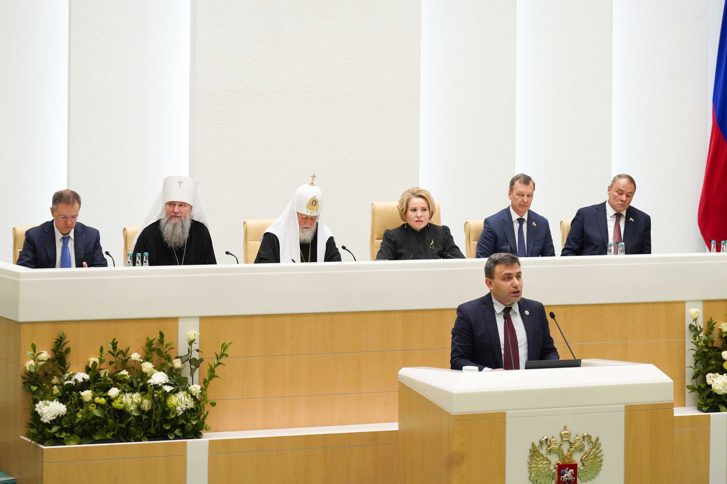 До начала пленарного заседания в Совете Федерации были проведены тематические круглые столы: «Воспитание и просвещение как инструменты формирования личности в современном обществе» (сопредседатели — председатель Комитета Совета Федерации по науке, образованию и культуре Л.С. Гумерова, председатель Синодального отдела религиозного образования и катехизации митрополит Екатеринбургский и Верхотурский Евгений); «Становление современной общественно-государственной модели воспитания гражданина и патриота (анализ опыта взаимодействия государственных и религиозных институтов)» (сопредседатели — первый заместитель председателя Комитета Совета Федерации по конституционному законодательству и государственному строительству Л.Н. Глебова и председатель Синодального миссионерского отдела архиепископ Зеленоградский Савва); «Церковь, власть и общество: поддержка участников специальной военной операции и их семей» (сопредседатели — первый заместитель председателя Комитета Совета Федерации по социальной политике Ж.Ю. Чефранова, член Комитета Совета Федерации по обороне и безопасности А.Л. Деркач, председатель Синодального отдела по взаимодействию с Вооруженными силами и правоохранительными органами, председатель Синодального комитета по взаимодействию с казачеством митрополит Ставропольский и Невинномысский Кирилл, председатель Синодального отдела по церковной благотворительности и социальному служению протоиерей Михаил Потокин).