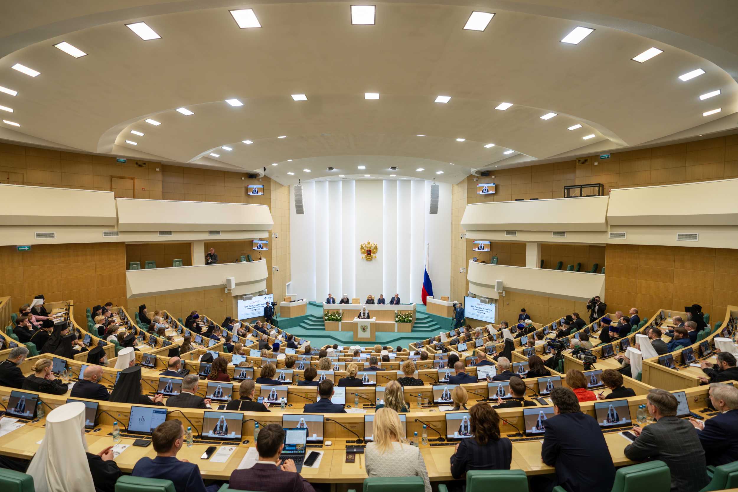 29 января 2026 года Святейший Патриарх Московский и всея Руси Кирилл и председатель Совета Федерации Федерального Собрания Российской Федерации В.И. Матвиенко приняли участие в пленарном заседании XIV Рождественских Парламентских встреч «Просвещение и нравственность: формирование личности и вызовы времени». Мероприятие состоялось в здании Совета Федерации в Москве в рамках XXXIV Международных Рождественских образовательных чтений.