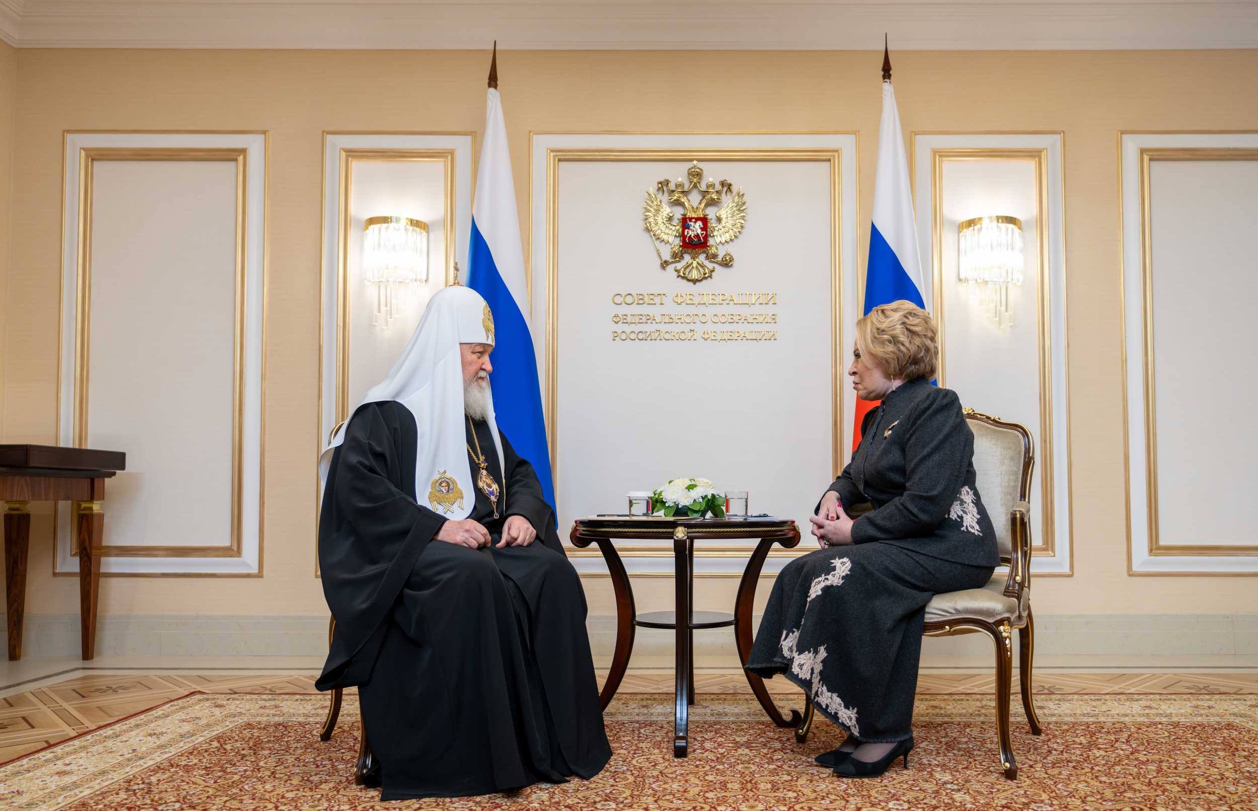 В Зале приемов состоялась беседа В.И. Матвиенко и Святейшего Патриарха Кирилла.