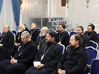 После этого состоялся пастырский семинар на тему «Вопросы чиноприема в Православную Церковь», который провел член Епархиального отдела по миссионерской работе, клирик Троицкого храма города Пушкино иерей Роман Бородинов.
