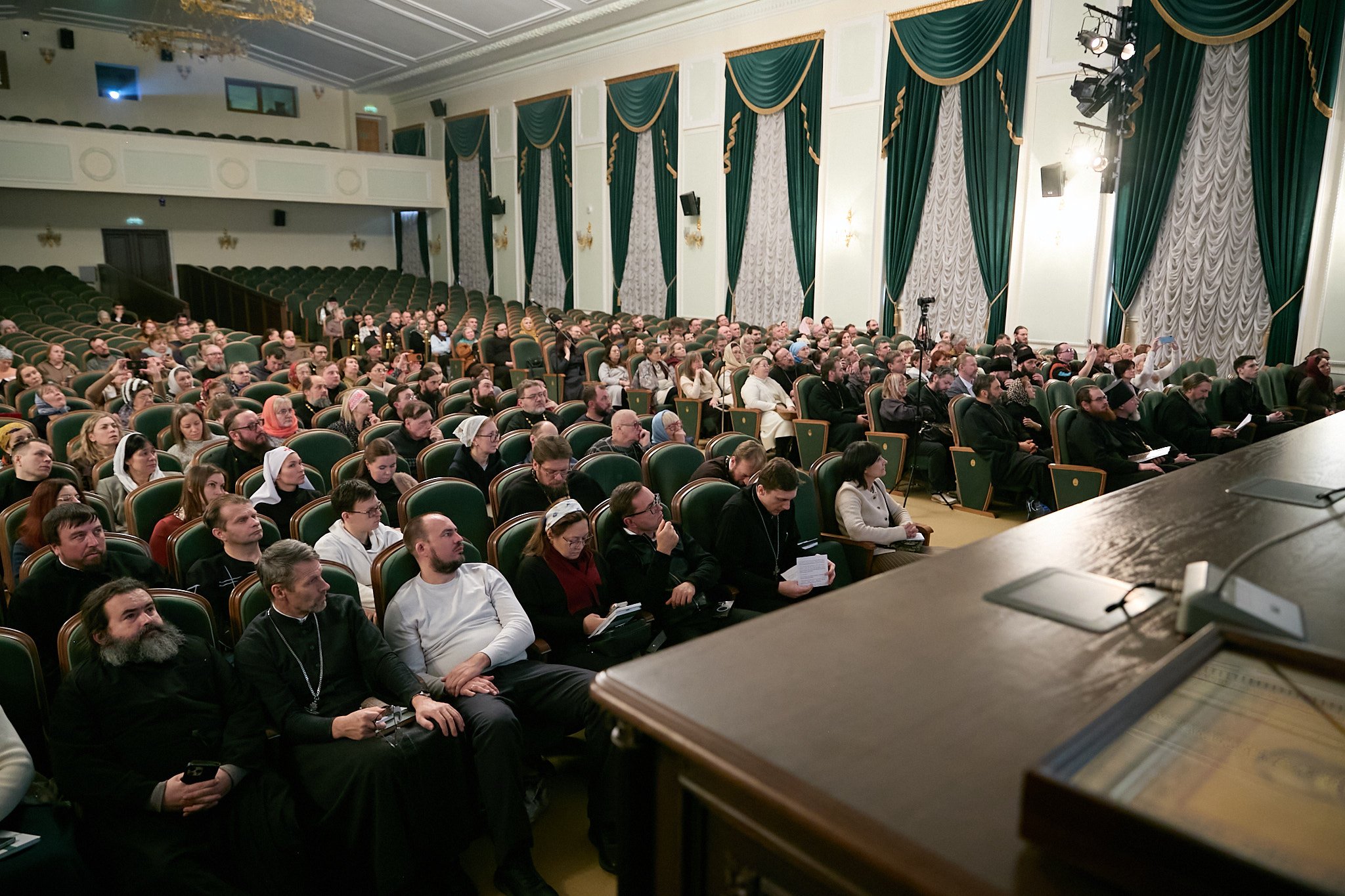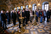 Перед конференцией участники помолились за Божественной литургией в Сергиевском храме Троице-Сергиевой лавры.