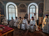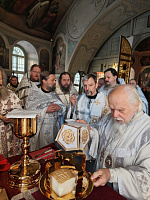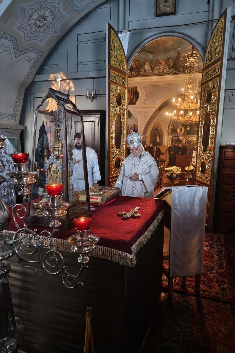 По благословению епископа Сергиево-Посадского и Дмитровского Кирилла Божественную литургию и чин отпевания возглавил епископ Пантелеимон (Шатов). Ему сослужили: благочинные церковных округов: Клинского – протоиерей Евгений Мальков, Солнечногорского – протоиерей Антоний Тирков, монастырей Сергиево-Посадской епархии – игумен Алексий (Горлычев); духовенство храмов Клинского округа.