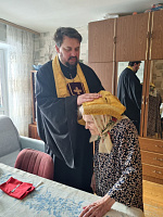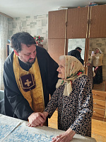 В ходе визита отец Димитрий совершил таинство Святого Причастия, помощью Божией укрепив духовные силы Марии Анисимовны.