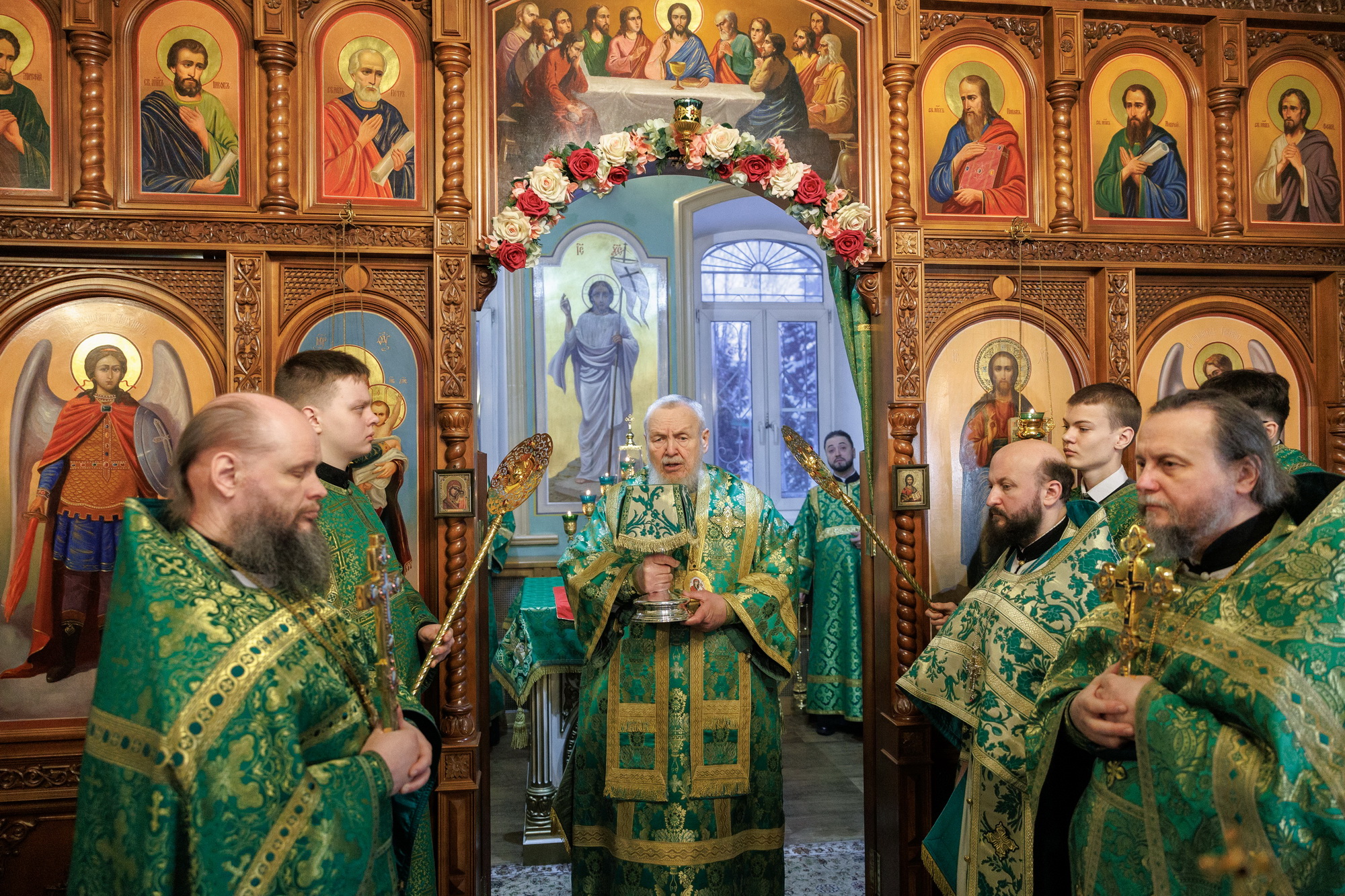 Его Преосвященству сослужили благочинный Орехово-Зуевского церковного округа и настоятель храма иеромонах Андрей (Коробков), благочинный монастырей Балашихинской епархии игумен Евмений (Лагутин), благочинный Дмитровского церковного округа Сергиево-Посадской епархии протоиерей Афанасий Чорногуз и духовенство Балашихинской епархии.