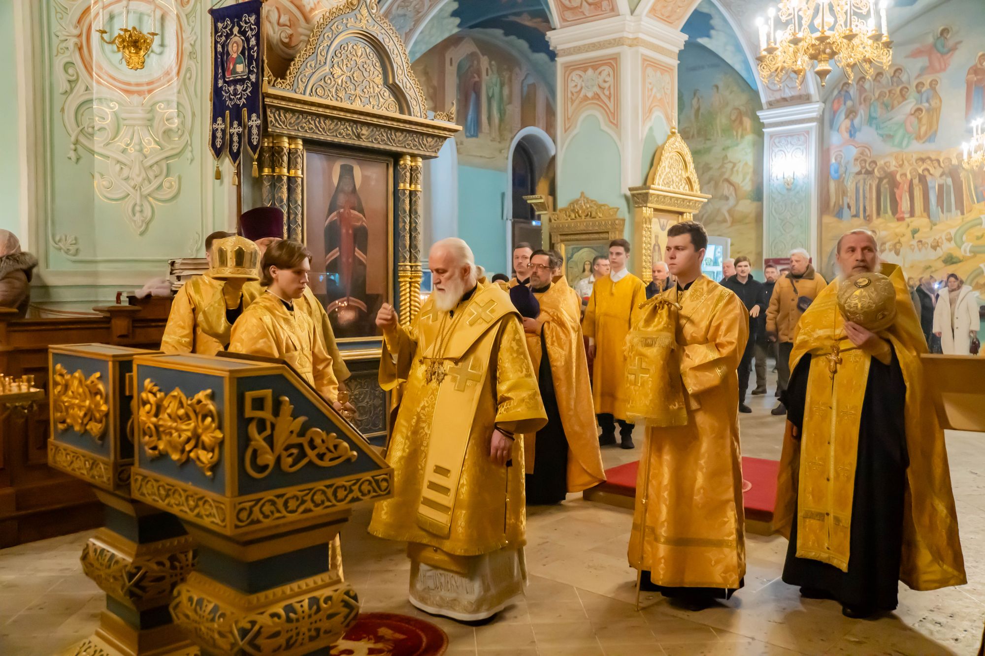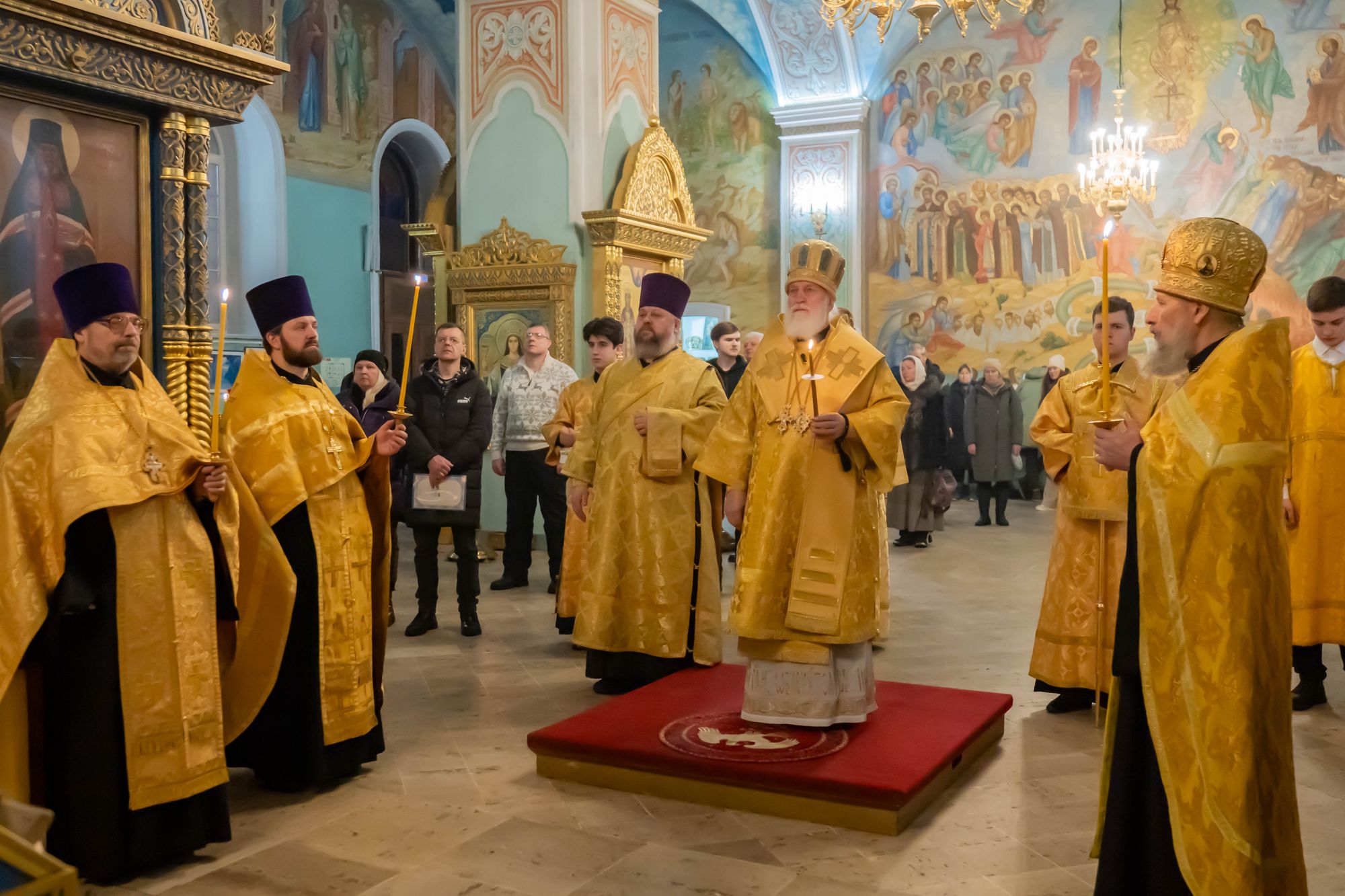 7 февраля 2026 года, накануне Недели о блудном сыне и памяти собора новомучеников и исповедников Церкви Русской, митрополит Крутицкий и Коломенский Павел возглавил всенощное бдение в Тихвинском храме Успенского кафедрального собора города Коломны.