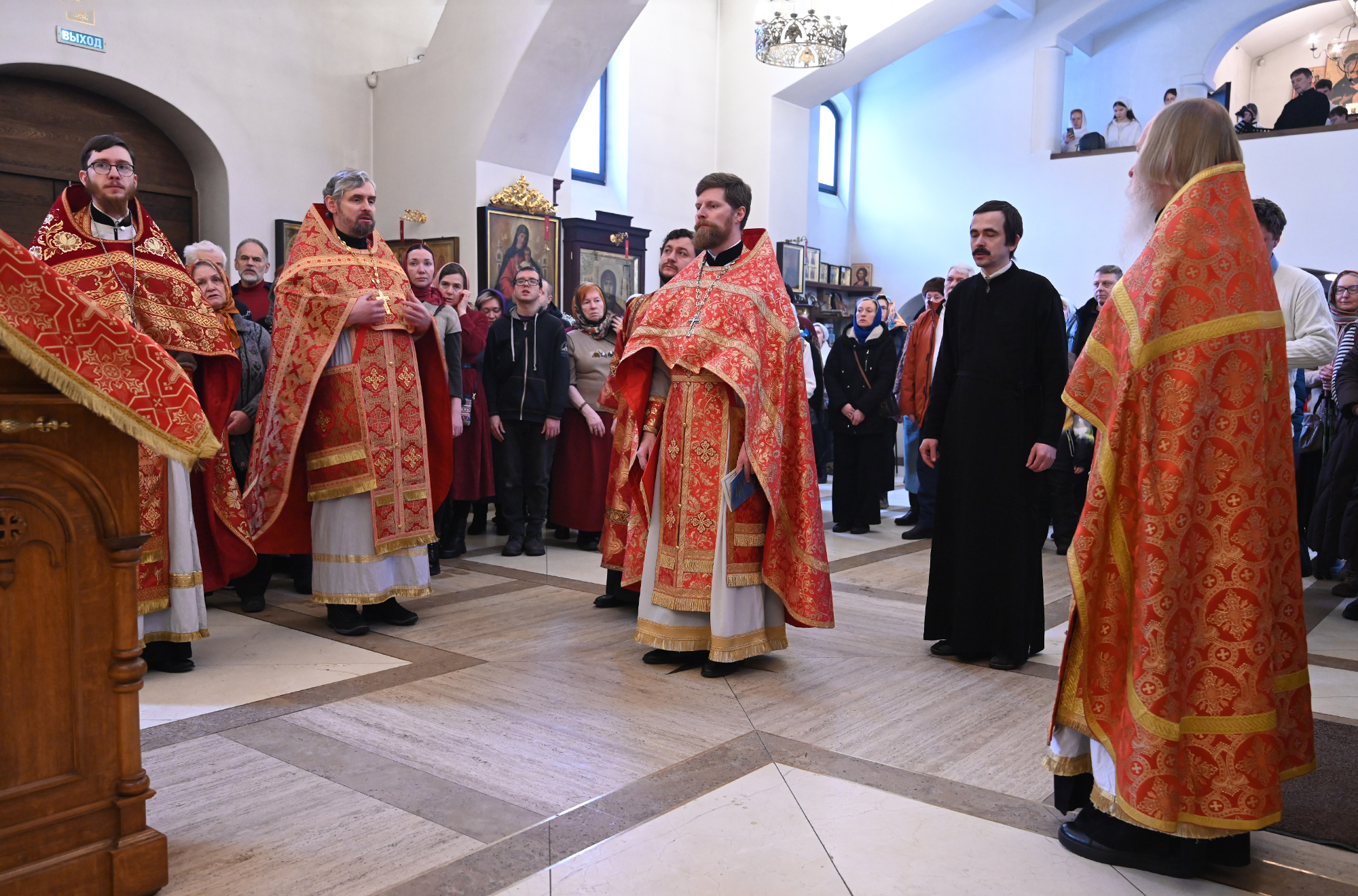 Богослужение сопровождалось антифонным пением хоров – храмового и Молодёжного благочинного под руководством А. В. Дедуха.