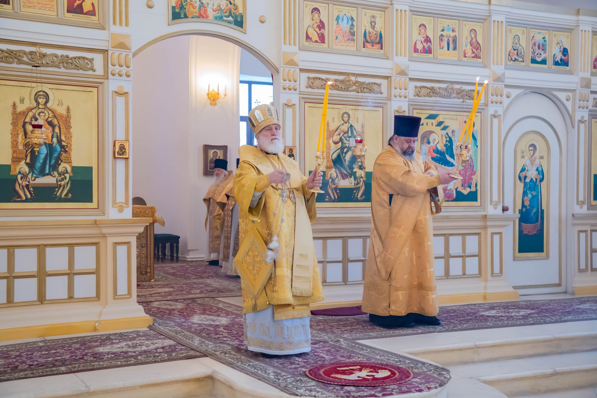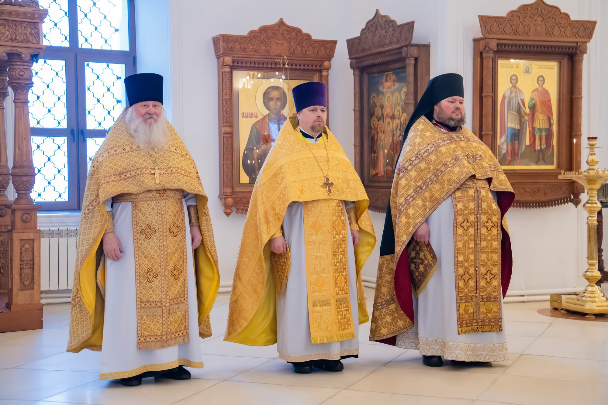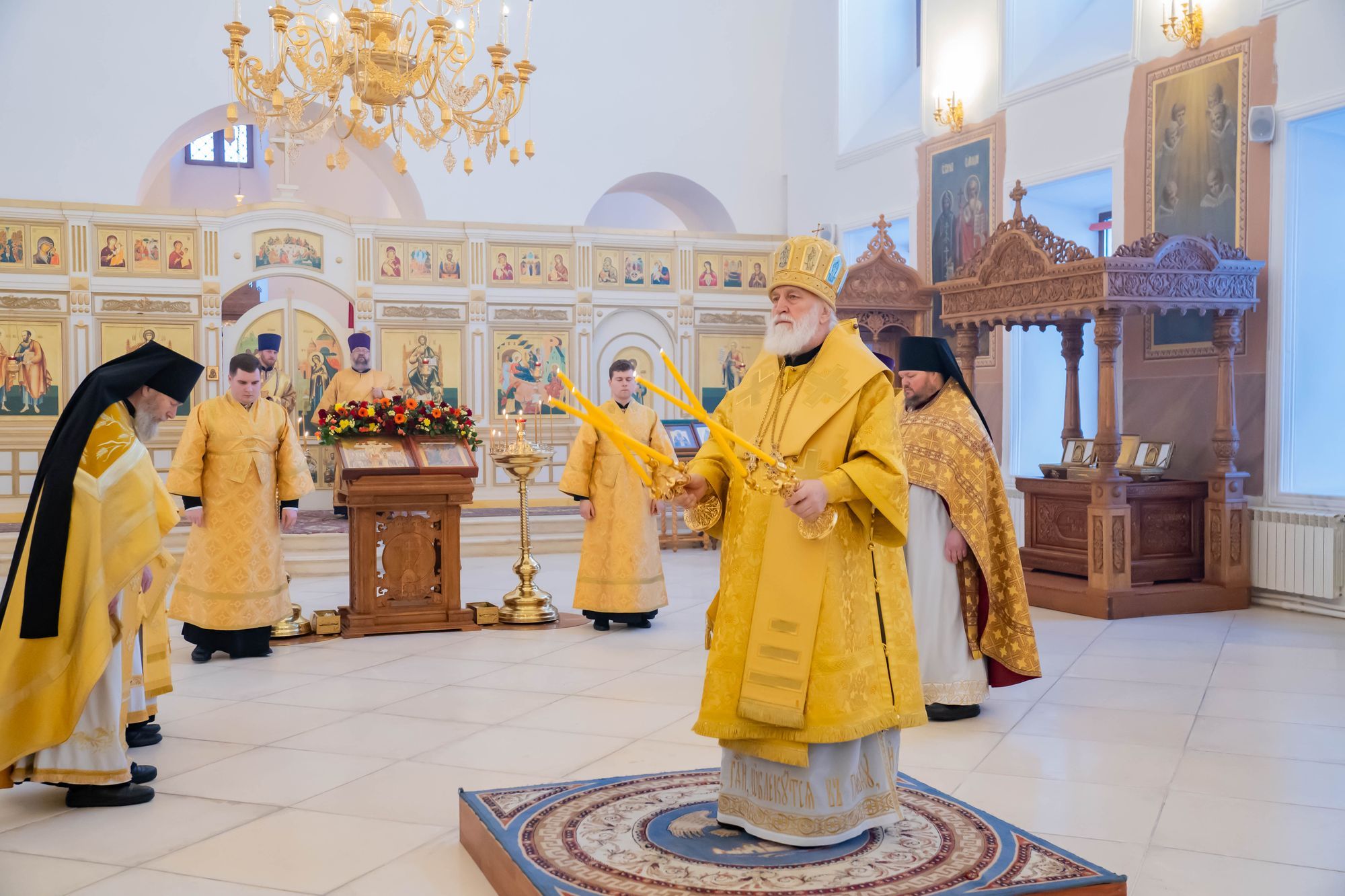 Его Высокопреосвященству сослужили: настоятель обители игумен Августин (Французов), благочинный монастырей Коломенской епархии игумен Варлаам (Горбунов), благочинный 1-го Егорьевского округа протоиерей Сергий Кожевников, благочинный 2-го Егорьевского округа иерей Сергий Ершов, клирики и насельники монастыря в священном сане.
