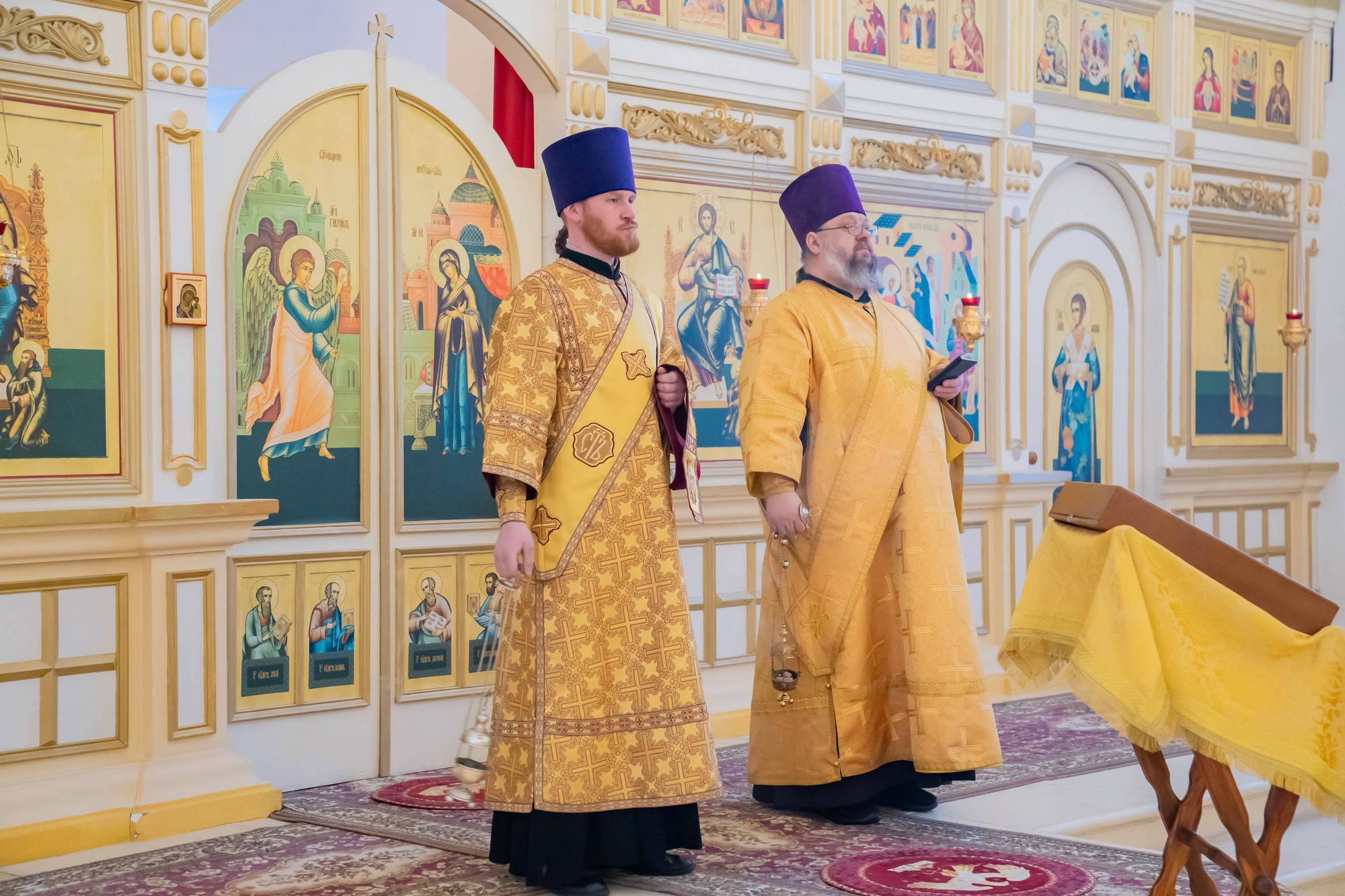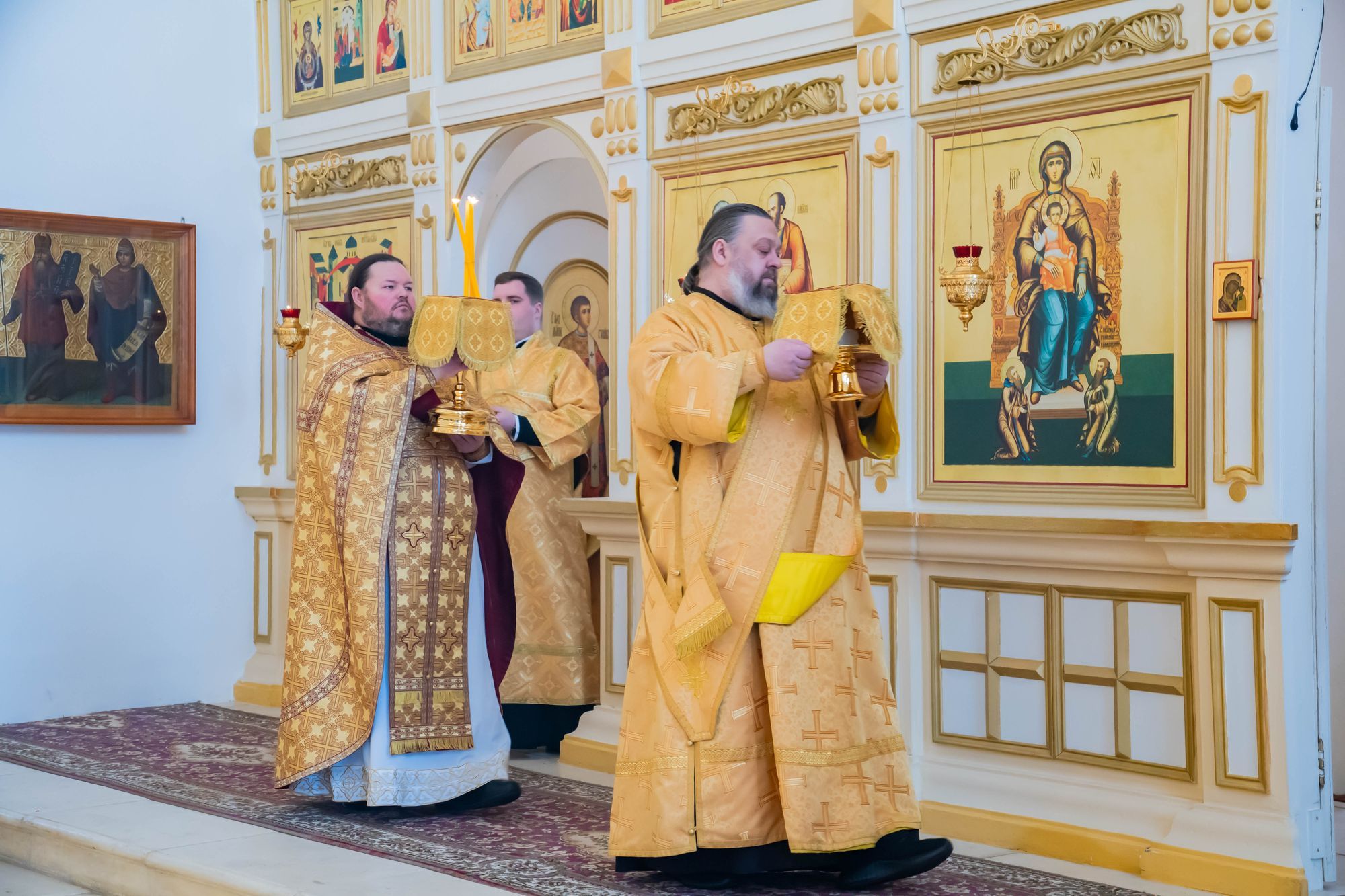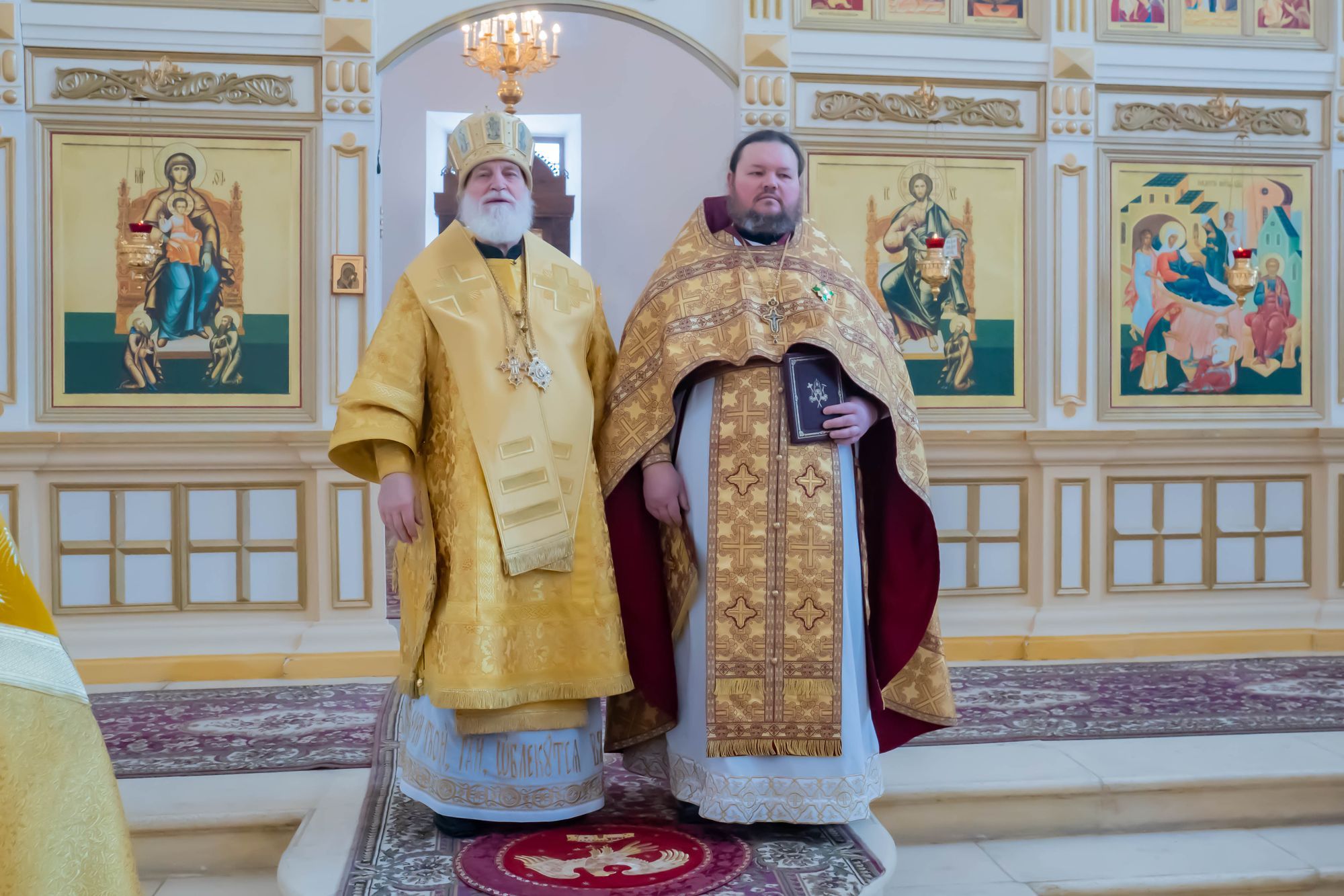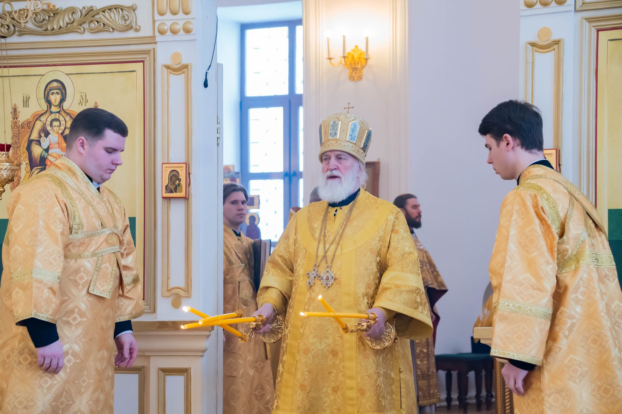 Его Высокопреосвященству сослужили: настоятель обители игумен Августин (Французов), благочинный монастырей Коломенской епархии игумен Варлаам (Горбунов), благочинный 1-го Егорьевского округа протоиерей Сергий Кожевников, благочинный 2-го Егорьевского округа иерей Сергий Ершов, клирики и насельники монастыря в священном сане.
