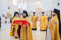 В завершение богослужения было совершено славление святым новомученикам и исповедникам Церкви Русской, после чего митрополит Павел обратился к духовенству и молящимся с архипастырским словом.