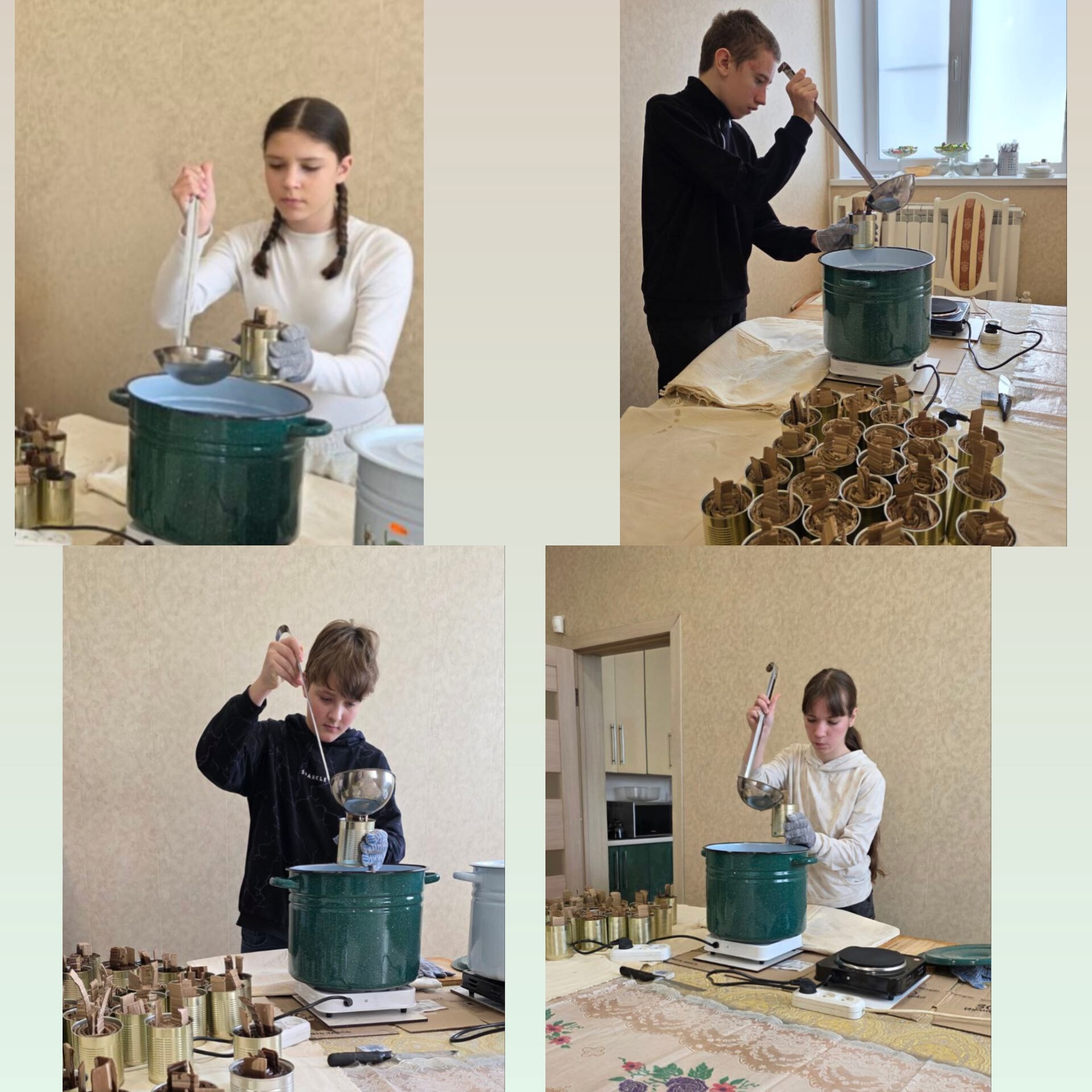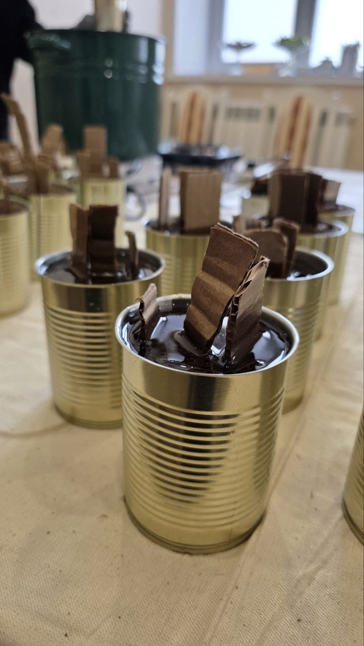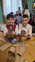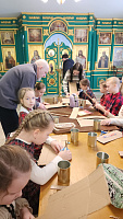 Вместе трудились дети, родители, педагоги и представители православного клуба "Очаг". Ребята вырезали и скручивали картонные гильзы, а представители православной молодежи заливали парафин в жестяные банки. За несколько часов совместного труда руками детей и взрослых было создано несколько десятков долгогорящих свечей, которые скоро отправятся нашим воинам.