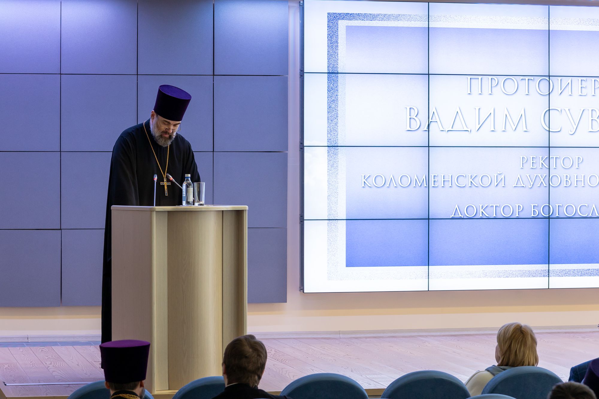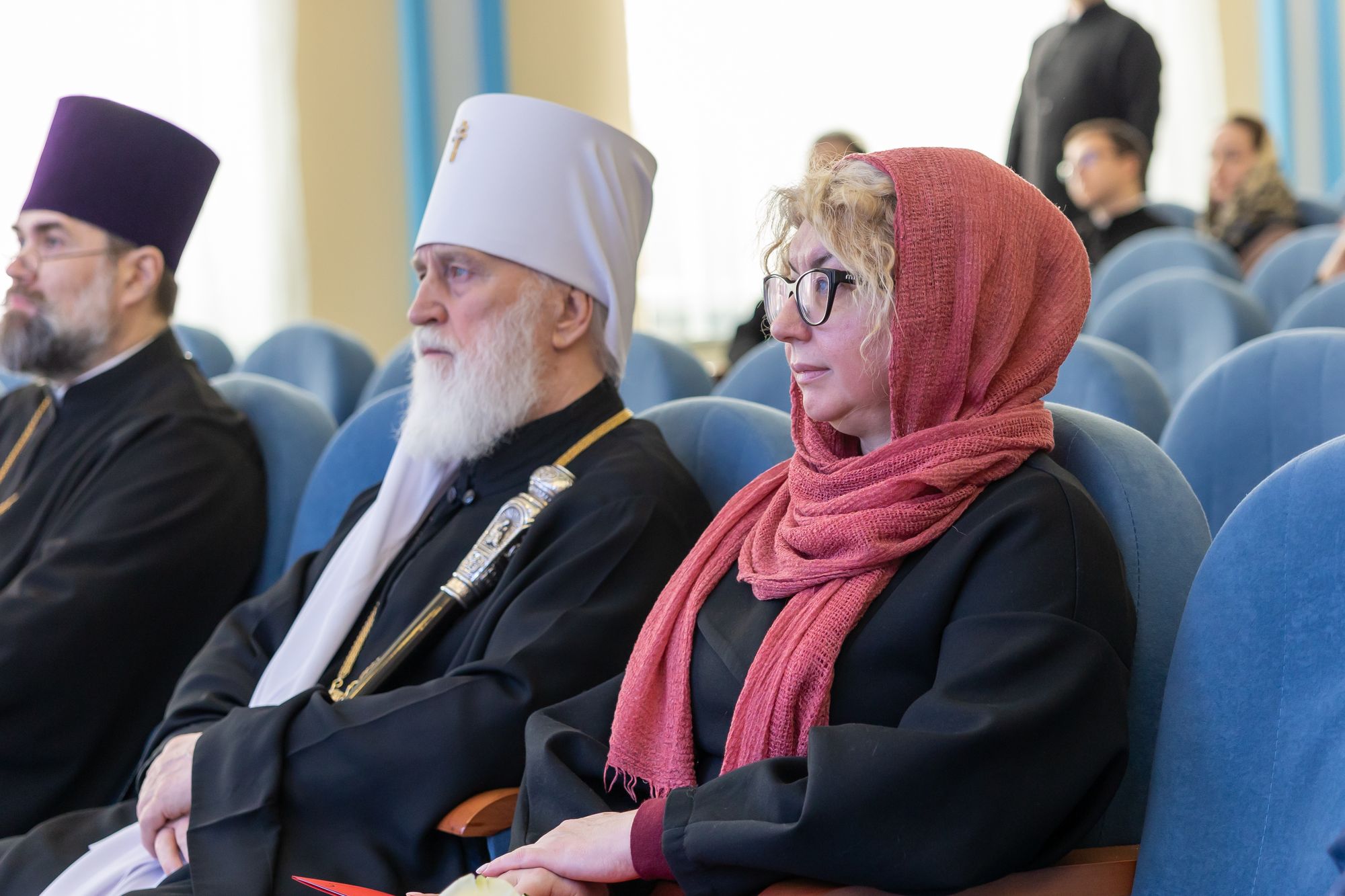 За богослужением молились: заместитель главы городского округа Коломна Дмитриева Ирина Викторовна; ректор Коломенского института (филиала) "Московского политехнического университета" Наталия Александровна Мурзак; благотворитель строительства комплекса зданий семинарии Николай Александрович Цветков, многочисленные прихожане и гости.