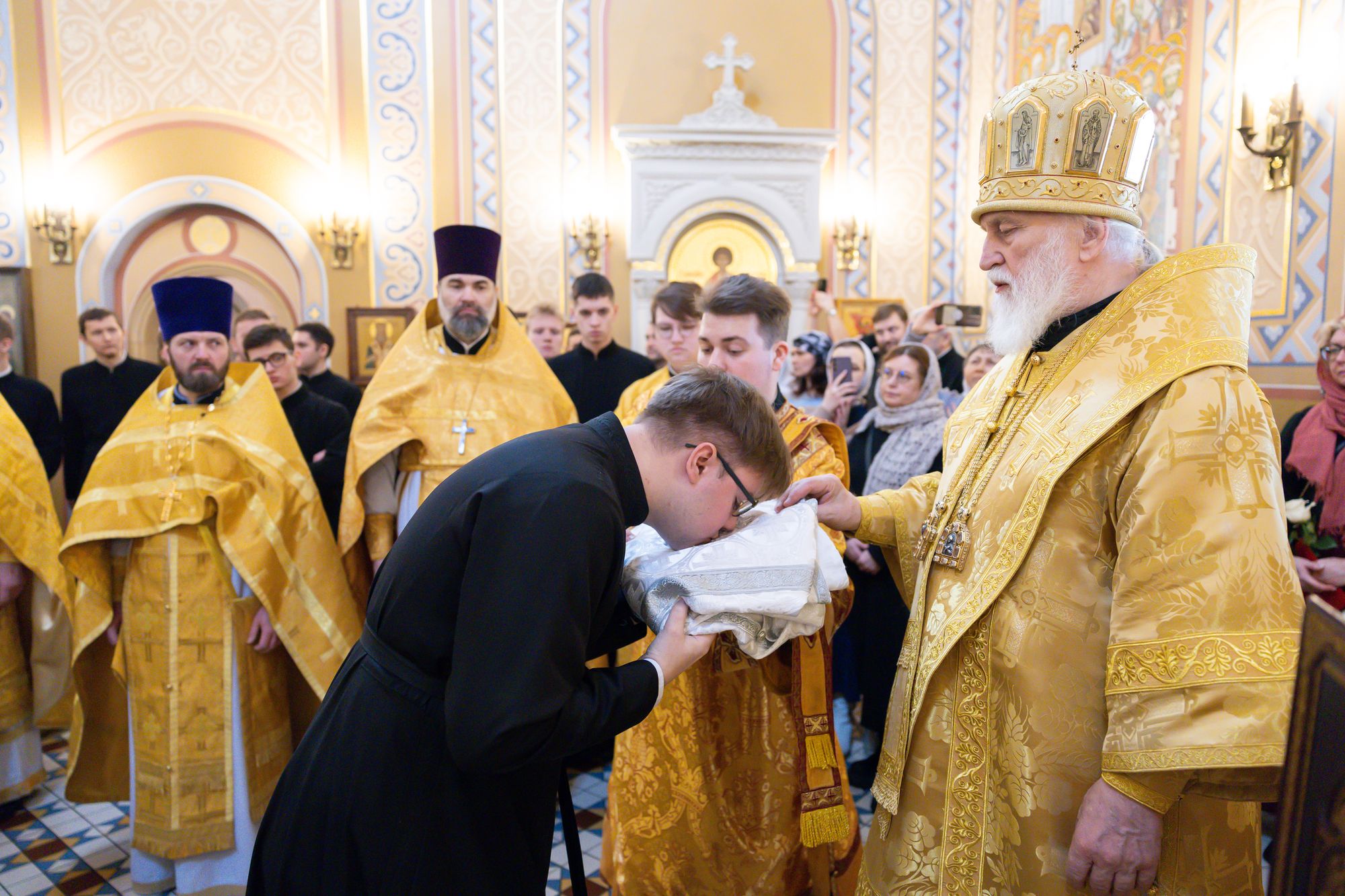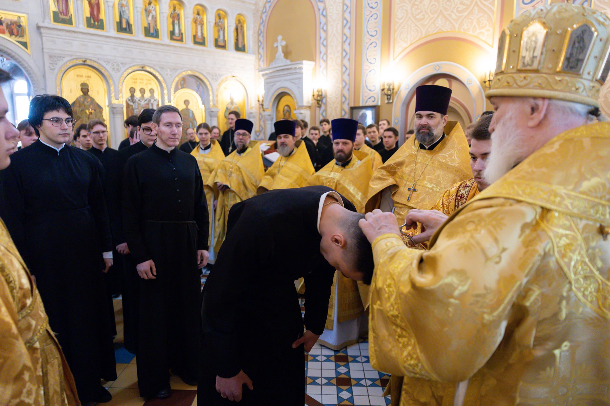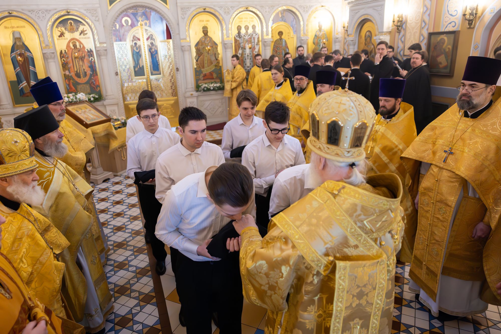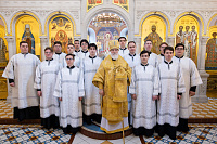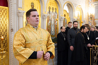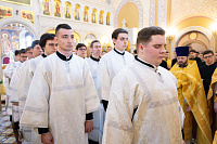 Перед началом богослужений митрополит Павел благословил учащихся 1-го курса семинарии на ношение подрясников.
