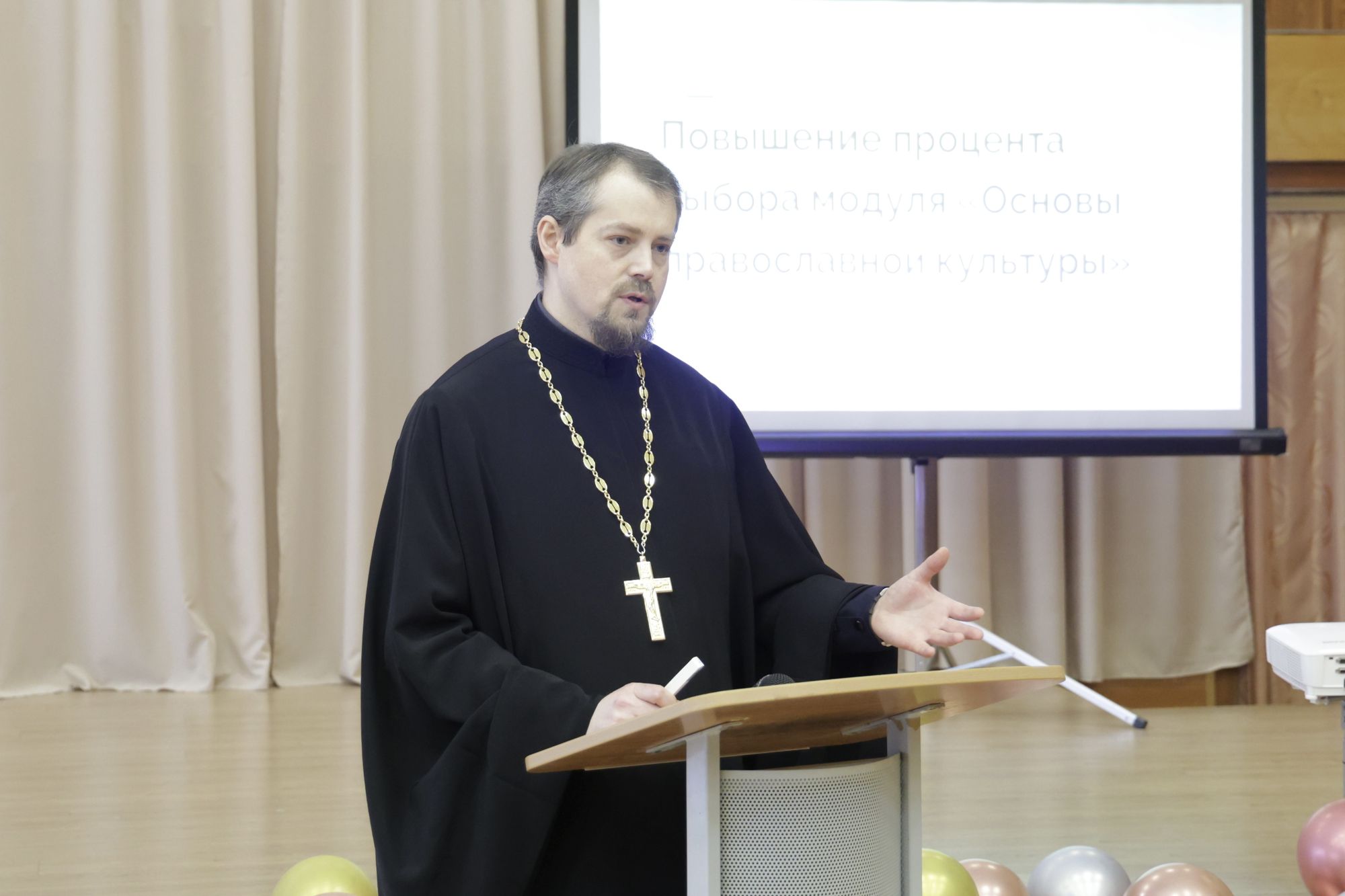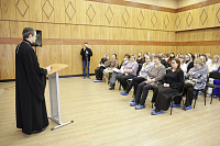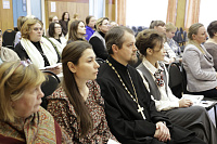 Отдельный блок был посвящён выступлению протоиерея Кирилла Седова, благочинного 1-го Воскресенского благочиннического округа. Священник представил доклад «Повышение процента выбора модуля «Основы православной культуры», делая акцент на содержательной наполненности предмета и его воспитательном потенциале. Он также презентовал методические пособия и интернет-ресурсы, полезные как для уроков, так и для разъяснительных бесед с родителями и законными представителями.