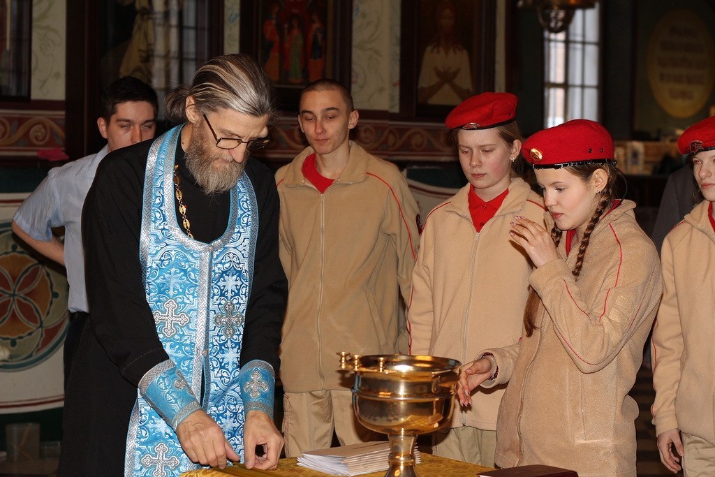 о даровании победы нашему воинству в СВО. Юнармейцы помолились вместе с батюшкой.