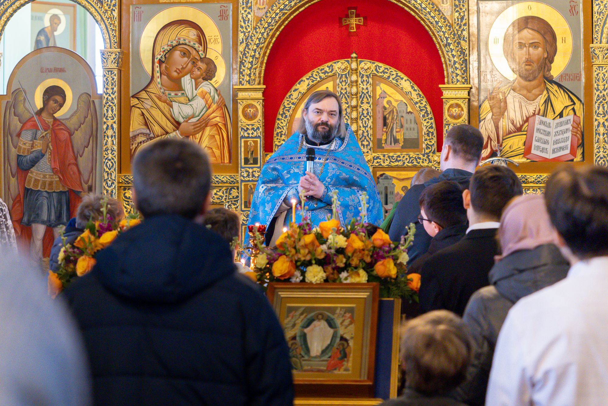 За богослужением молились: православная молодёжь Коломенской епархии, активисты "Молодой Гвардии Единой России", Всероссийского общественно-государственного движения детей и молодёжи "Движение первых", студенты, школьники, представители волонтёрских движений, общественных организаций и молодёжных центров.