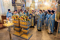 Богослужебные песнопения исполнил соборный хор под управлением Натальи Камышниковой.