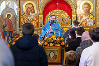 По окончании Литургии было совершено славление, после чего Владыка Павел огласил Патриаршее обращение ко Дню православной молодёжи и обратился к духовенству и молящимся с архипастырским словом.