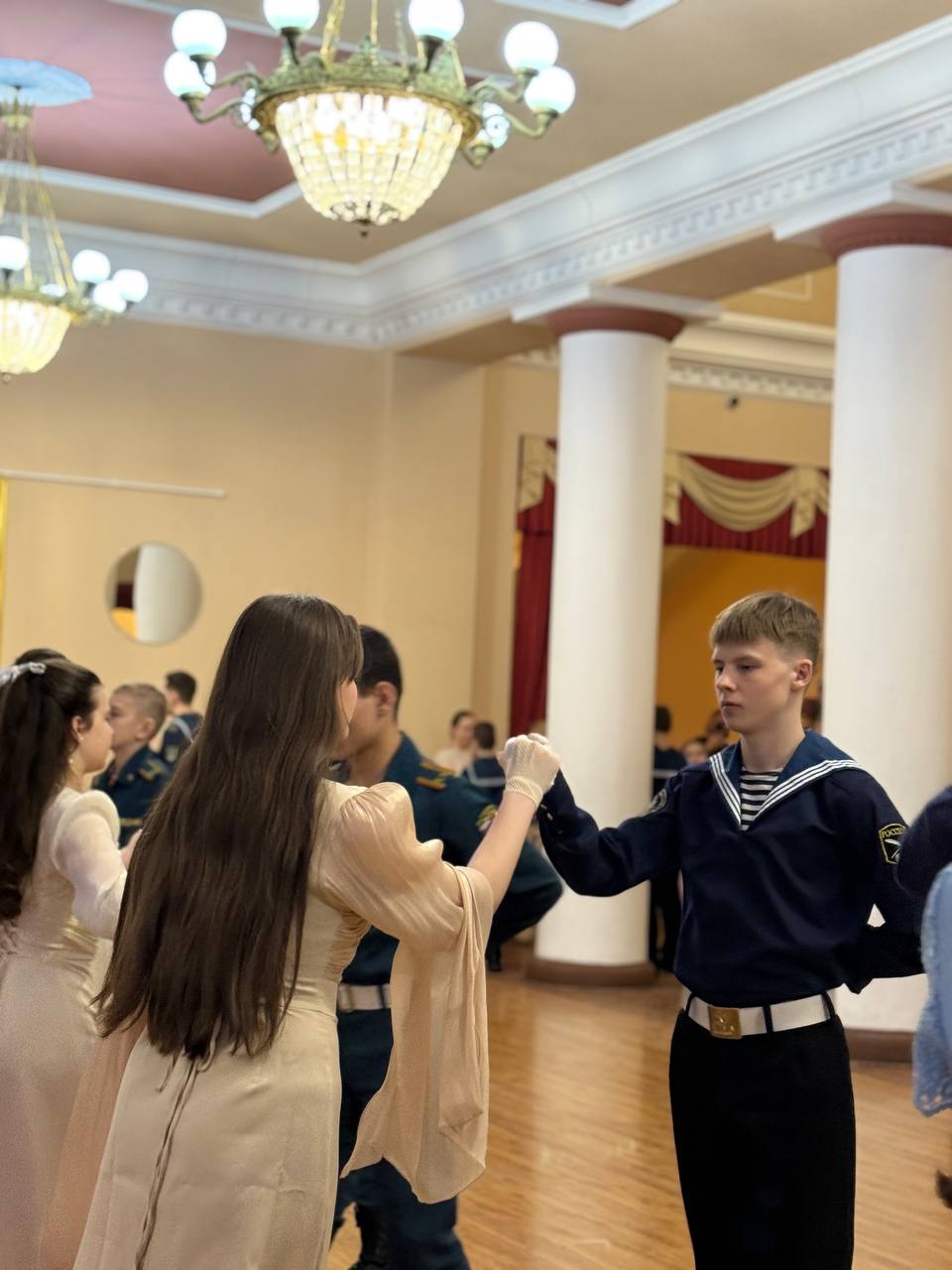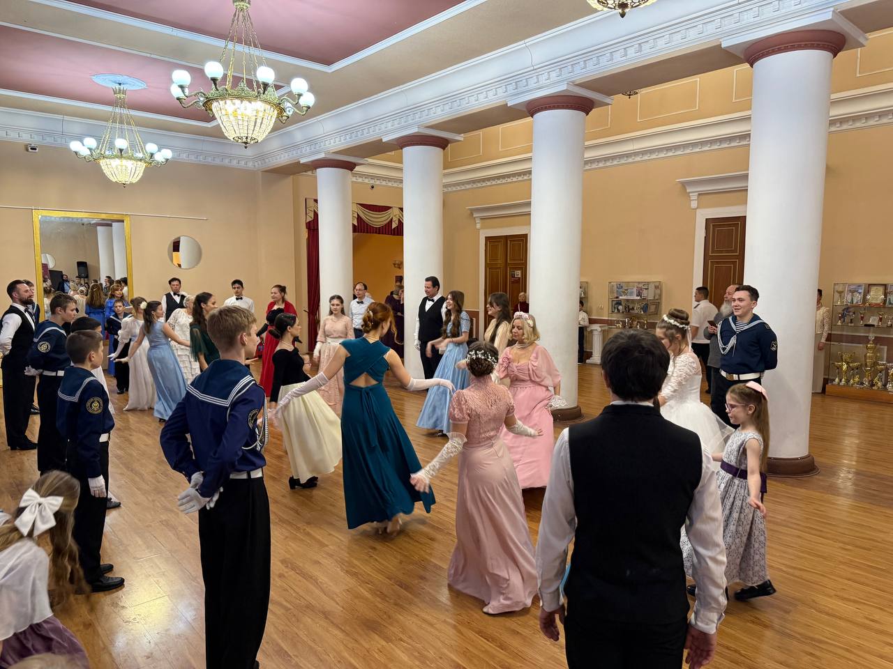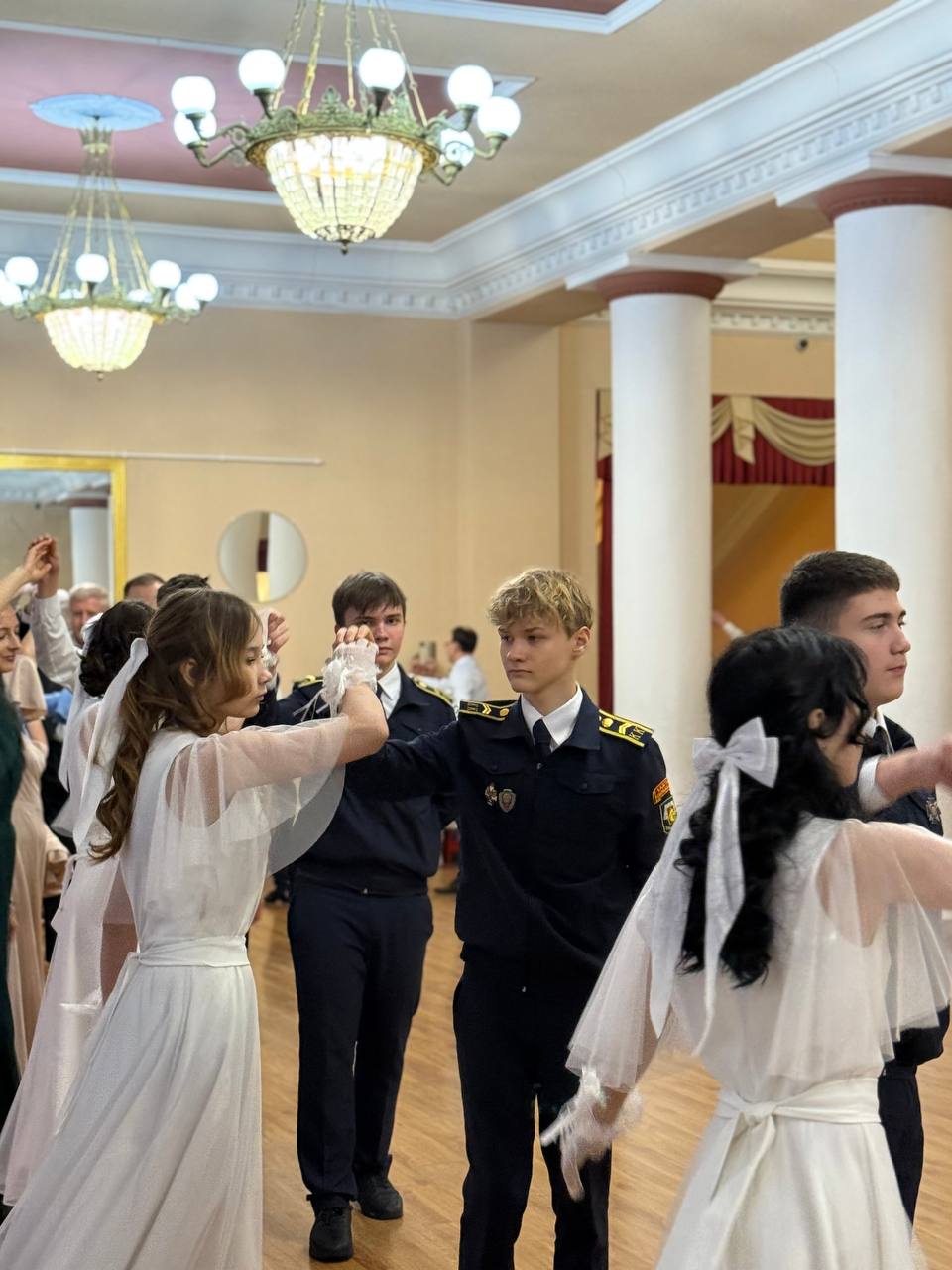 Затем состоялась торжественная часть мероприятия. В ходе бала было исполнено 30 танцев, в которых приняли участие около 100 молодых людей из Пушкинского городского округа.