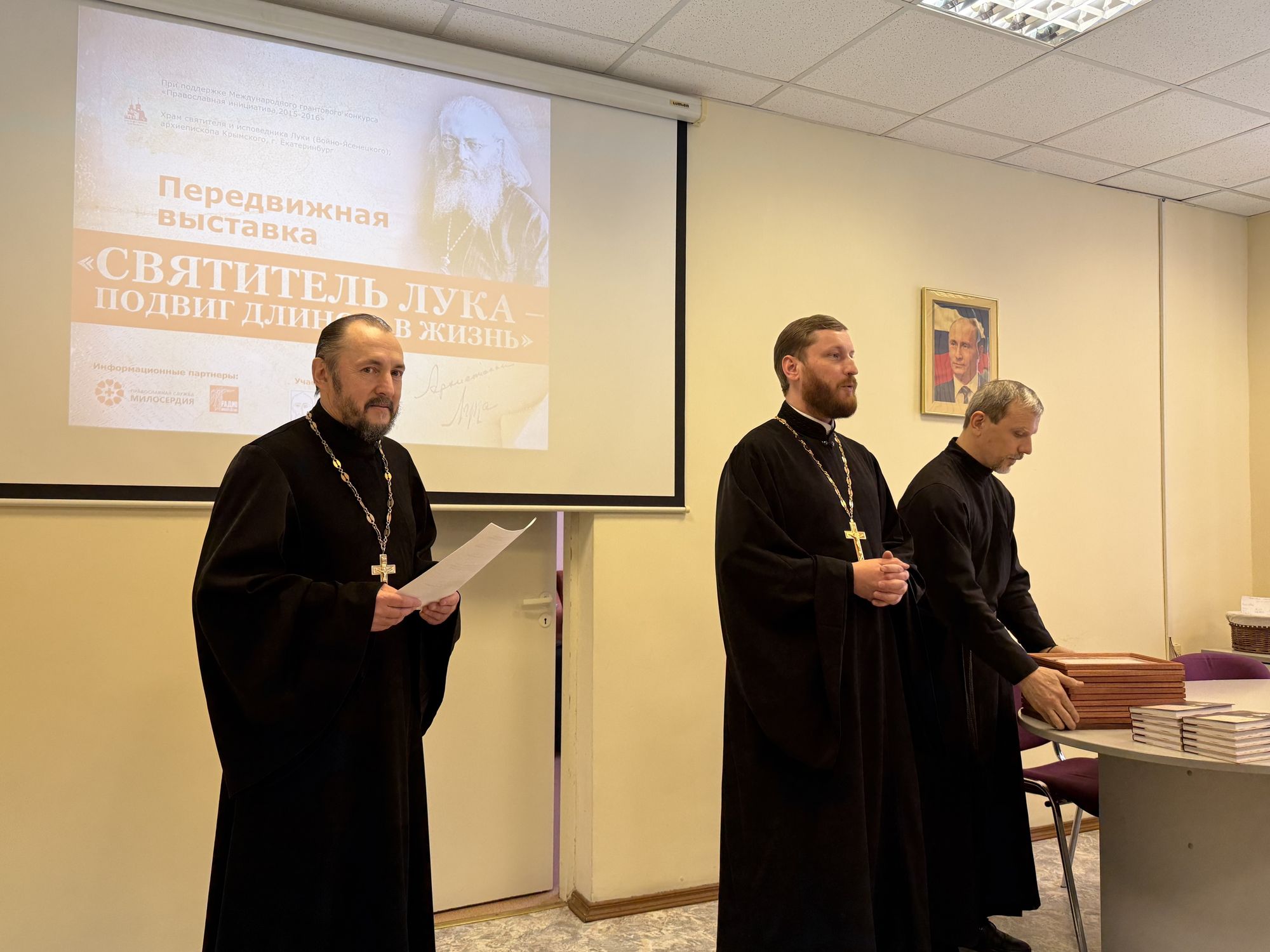 Затем состоялось открытие передвижной выставки «Святитель Лука – подвиг длиною в жизнь». На стендах можно увидеть основные события из жизни святого, малоизвестные факты его биографии, редкие архивные фотографии и документы.