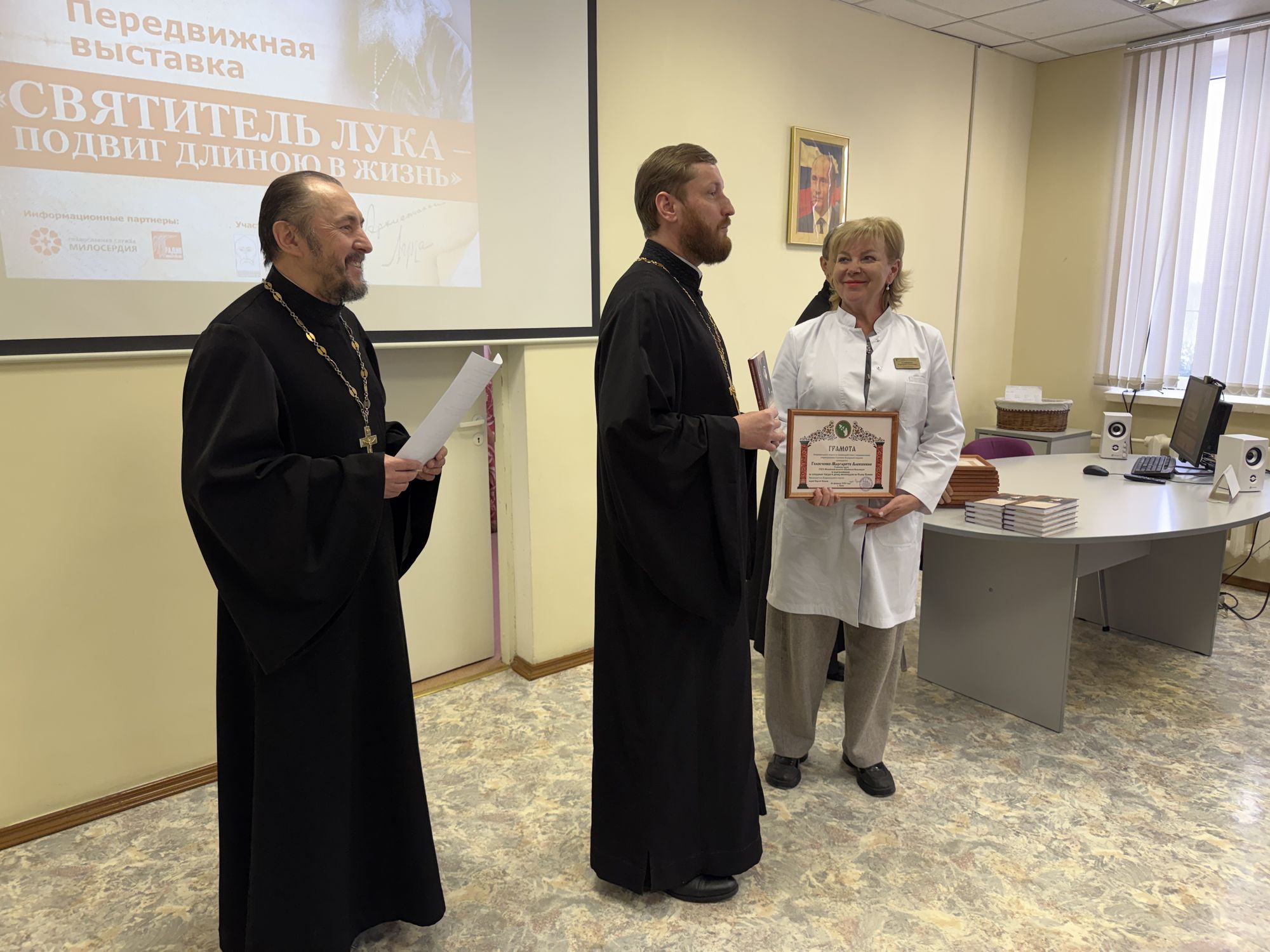 16 февраля 2026 года по благословению епископа Сергиево-Посадского и Дмитровского Кирилла в Клинской больнице стартовал духовно-просветительский проект «Святитель Лука – подвиг длиною в жизнь». Мероприятие прошло при поддержке благочинного Клинского церковного округа протоиерея Евгения Малькова и главного врача больницы М. А. Головченко.