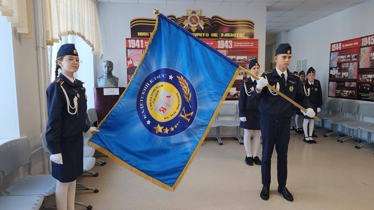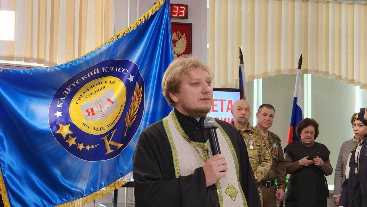 17 февраля в школе имени М. П. Марченко посёлка Свердловский состоялось торжественное освящение знамени трех кадетских классов.