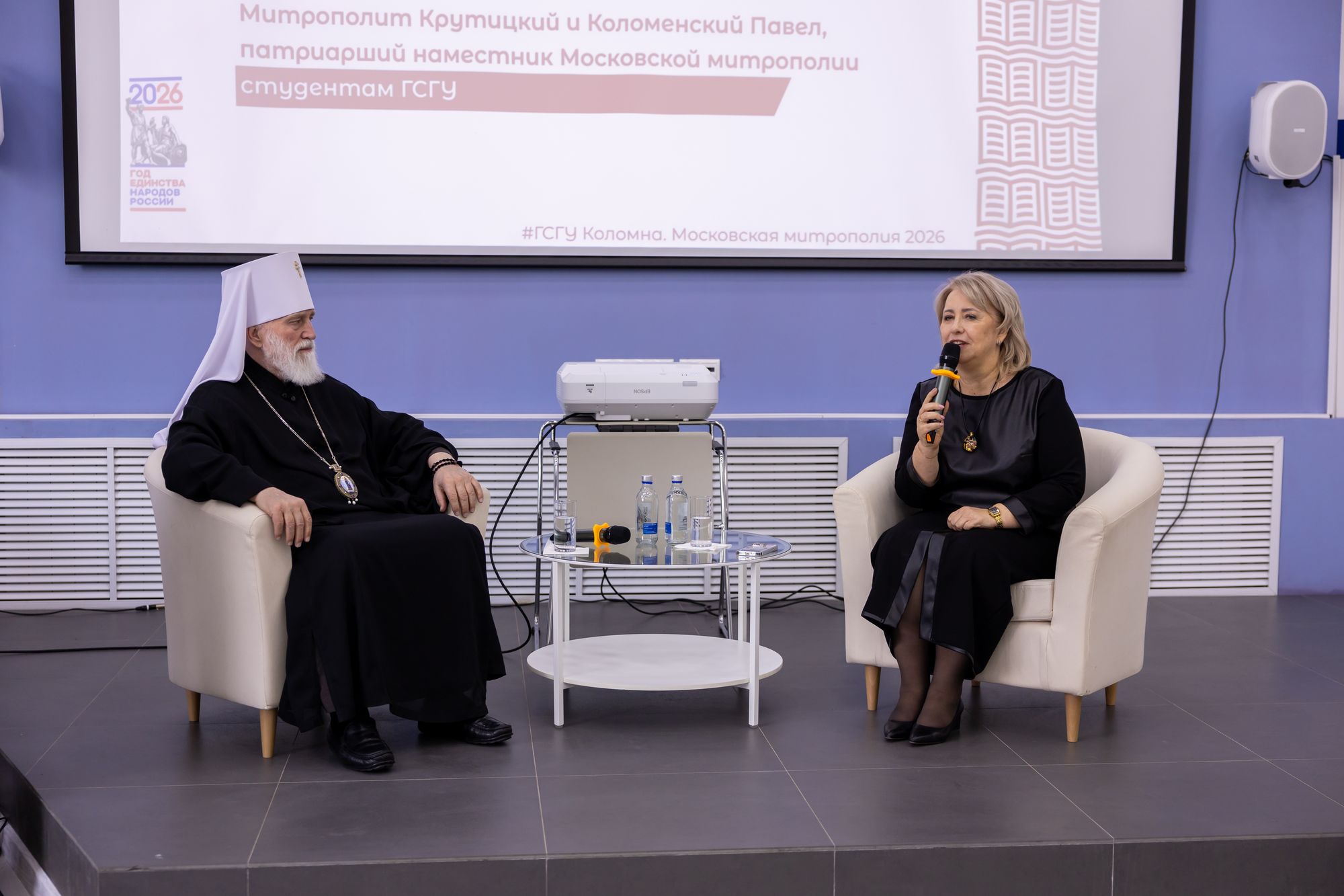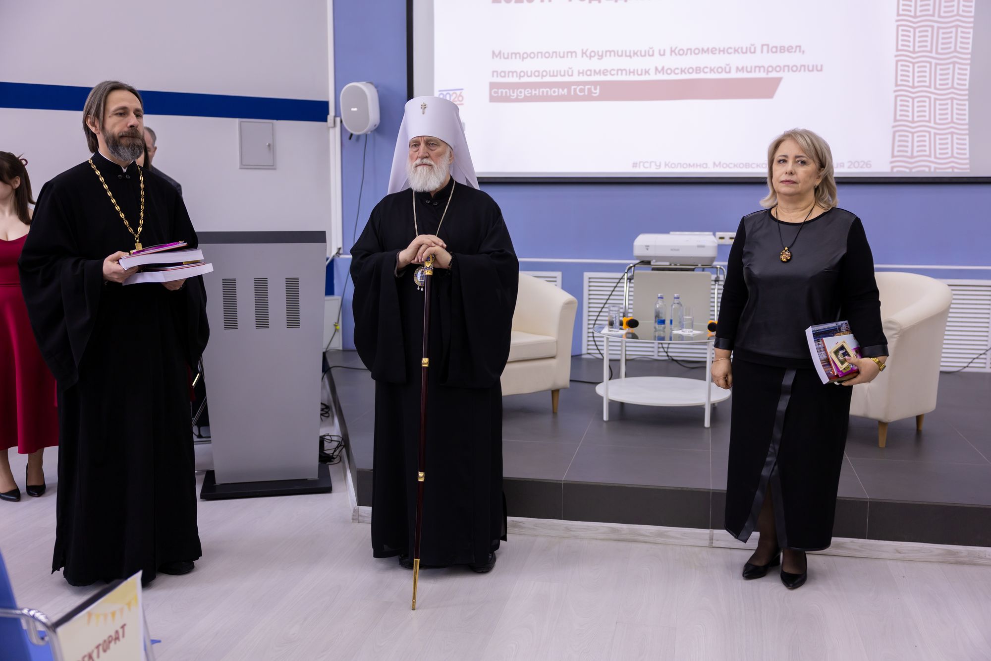 18 февраля 2026 года митрополит Крутицкий и Коломенский Павел в рамках празднования Дня православной молодёжи по сложившейся традиции встретился со студентами ГОУ ВО МО «Государственный социально-гуманитарный университет» города Коломна. Особенность этих ежегодных встреч в университете в том, что на них собирается молодёжь, ищущая смысл жизни человека на земле. В этом году на встречу собралось более 200 человек – студенты и представители научного сообщества.