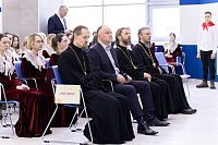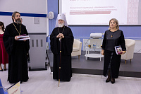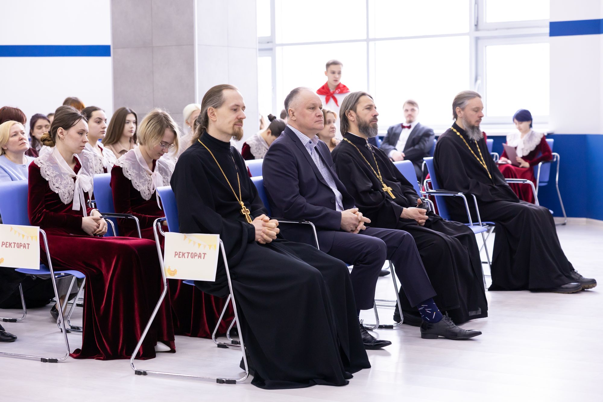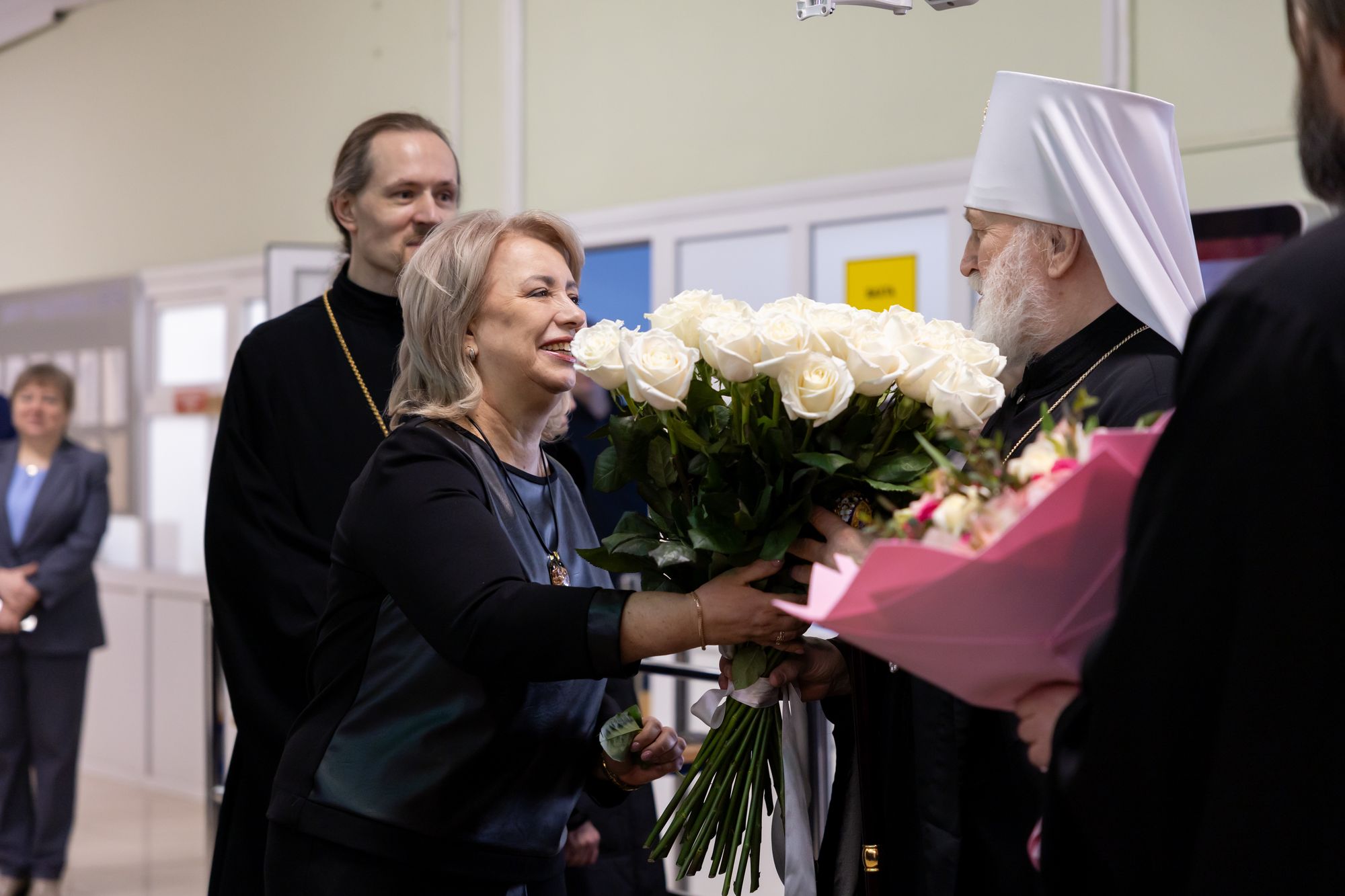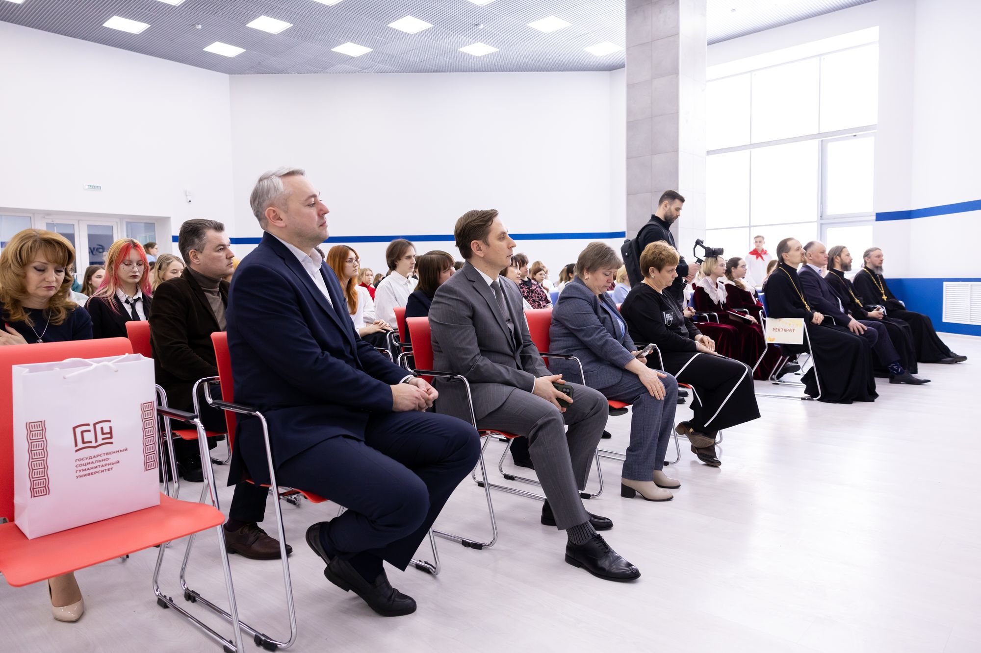 В главном корпусе университета владыку Павла встречали: ректор ГСГУ Жанна Константиновна Леонова; благочинный 1-го Коломенского округа протоиерей Алексий Виноградов; заведующий сектором по взаимодействию с ВУЗами Епархиального отдела религиозного образования и катехизации, благочинный 3-го Коломенского округа иерей Александр Сирин; председатель Отдела по миссионерской работе и делам молодёжи Коломенской епархии иерей Иоанн Бакушкин.