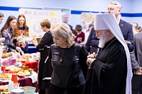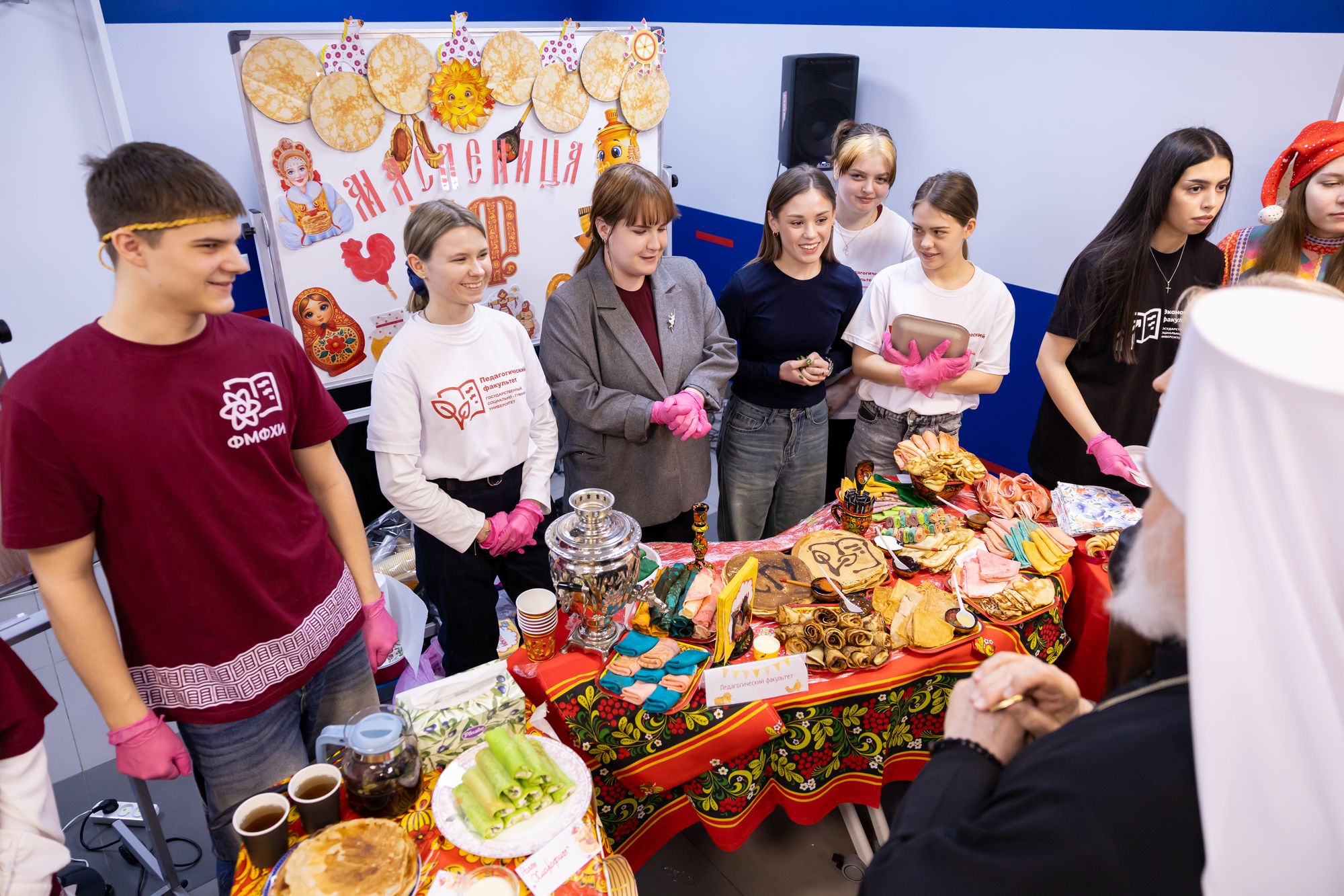 В завершении встречи митрополит Павел посетил межфакультетской выставки блинов «Какой смысл в масленичном праздновании?». Владыке Павлу от студентов вручили памятный подарок. Митрополит Павел вручил каждому участнику встречи иконочку святителя Тихона, патриарха Московского, книгу проповедей патриарха Кирилла о Пасхе, Патриарший календарь и шоколадку.