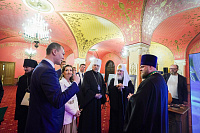 Далее Святейший Патриарх Московский и всея Руси Кирилл проследовал в Зал церковных соборов.