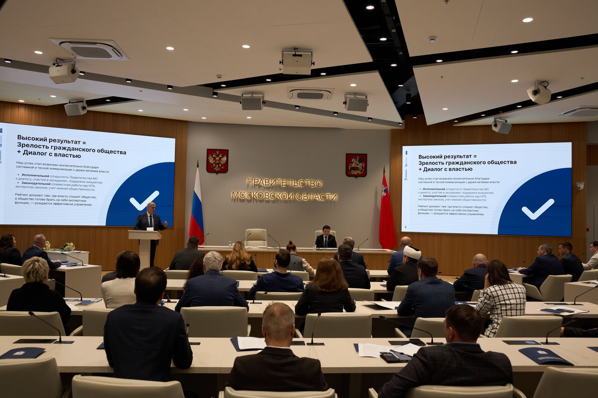 А.Ю. Воробьёв поблагодарил общественников за активную работу и отметил важность совместных усилий власти и гражданского общества. Председатель палаты Анатолий Торкунов сообщил, что Подмосковье заняло первое место в России по публичной активности членов региональных общественных палат, а также вошло в топ-5 по нормотворческой активности.