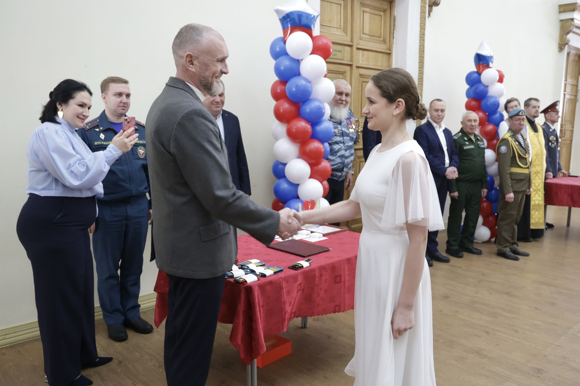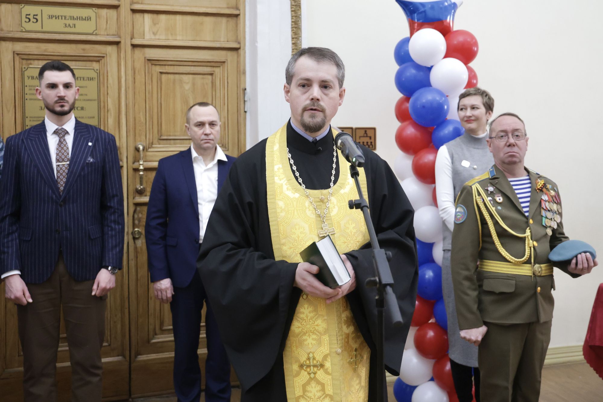 С напутственными словами к юным кадетам обратились почётные гости: глава городского округа Воскресенск А.В. Малкин, благочинный 1-го Воскресенского благочиннического округа протоиерей Кирилл Седов, ветеран Чеченской войны и подполковник полиции А.Р. Ахмеров, а также председатель Воскресенского совета ветеранов войны, труда, Вооружённых Сил и правоохранительных органов В.Ф. Дацюк.