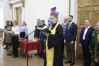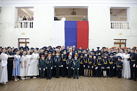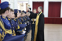 Протоиерей Кирилл Седов совершил молебный чин «На начало всякого доброго дела» и окропил воспитанников святой водой, благословив на верное служение Родине.