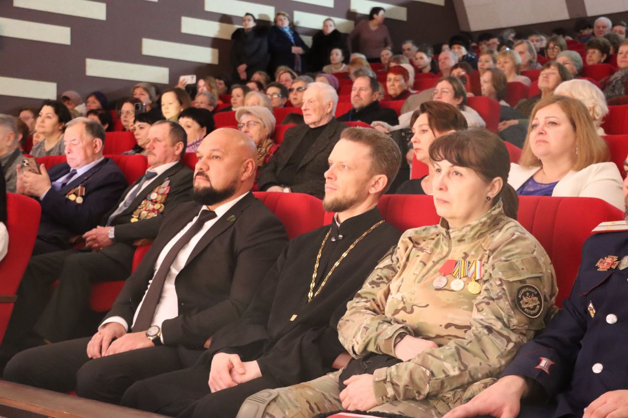 В зале присутствовали ветераны боевых действий, участники СВО, их жены, матери, жители города. С приветственными словами выступили благочинный 1-го Бронницкого округа иерей Сергий Себелев и председатель городского Совета депутатов Александр Иванович Каширин.