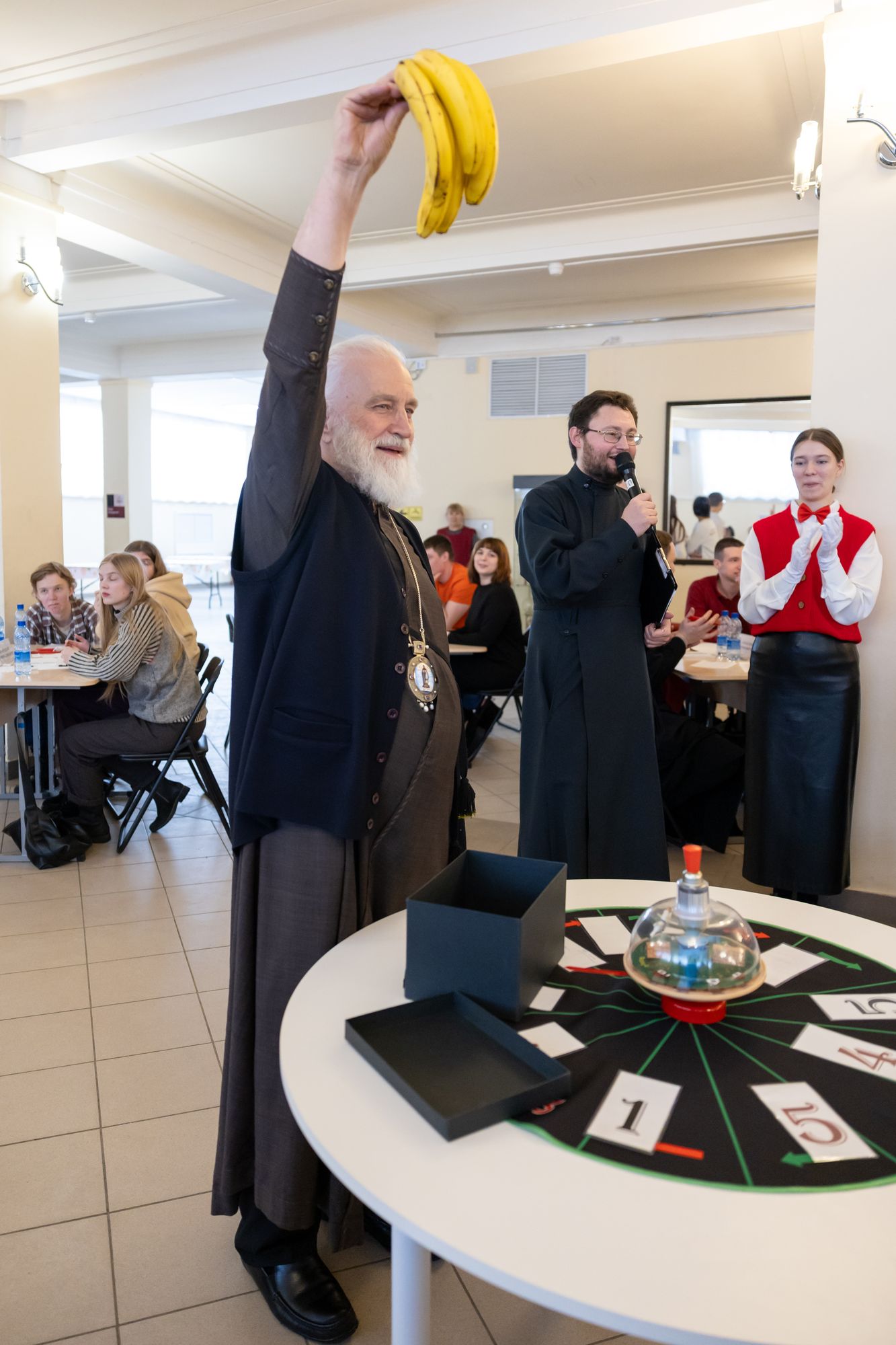 В перерыве между двумя турами для участников игры была организована чайная пауза. Также молодёжь поздравила Владыку с Днём Рождения музыкальной композицией.