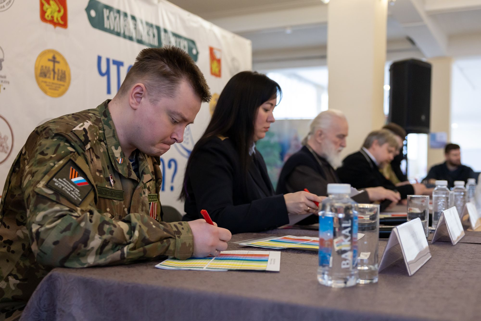 В состав жюри вошли: митрополит Крутицкий и Коломенский Павел, председатель Отдела по миссионерской работе и делам молодёжи Коломенской епархии иерей Иоанн Бакушкин, благочинный 1-го Егорьевского округа протоиерей Сергий Кожевников, член Ассоциации ветеранов СВО Валерий Волчков, заведующая отделением «Авиационная наземная техника» ЕАТК им. В.П. Чкалова филиал МГТУГА Нелли Михайловна Гальцева.