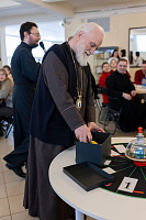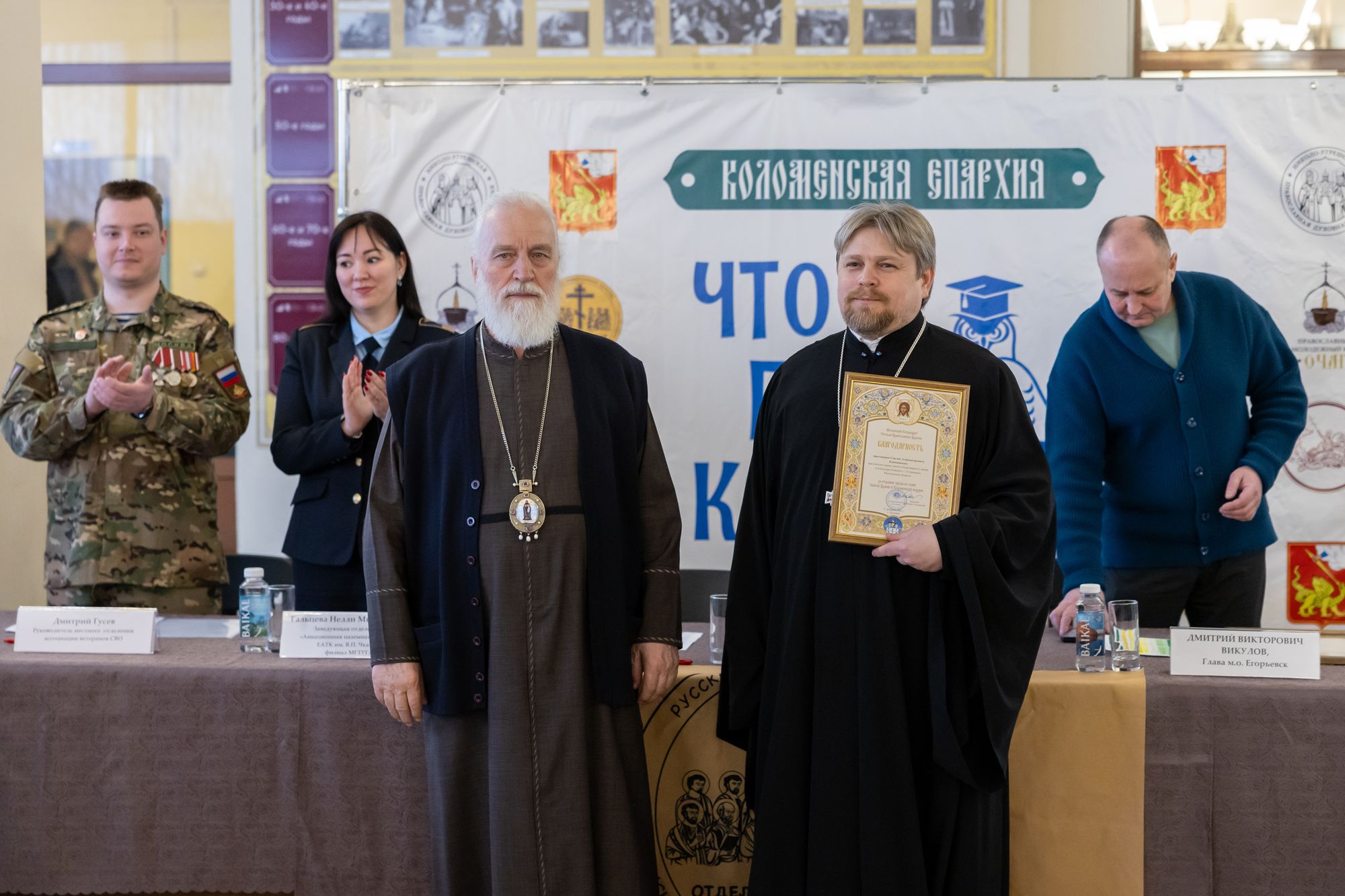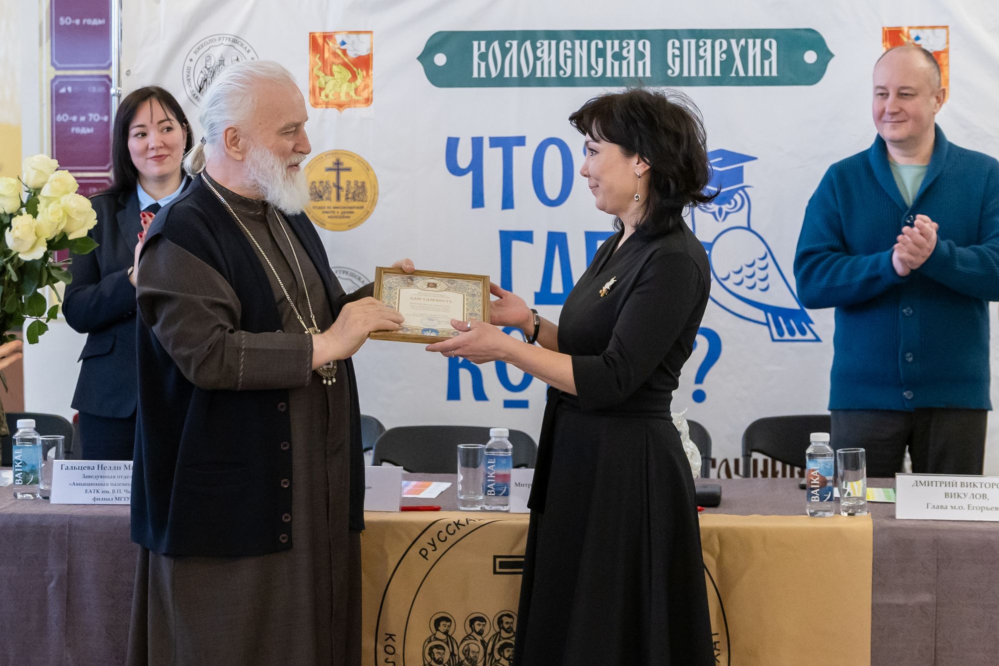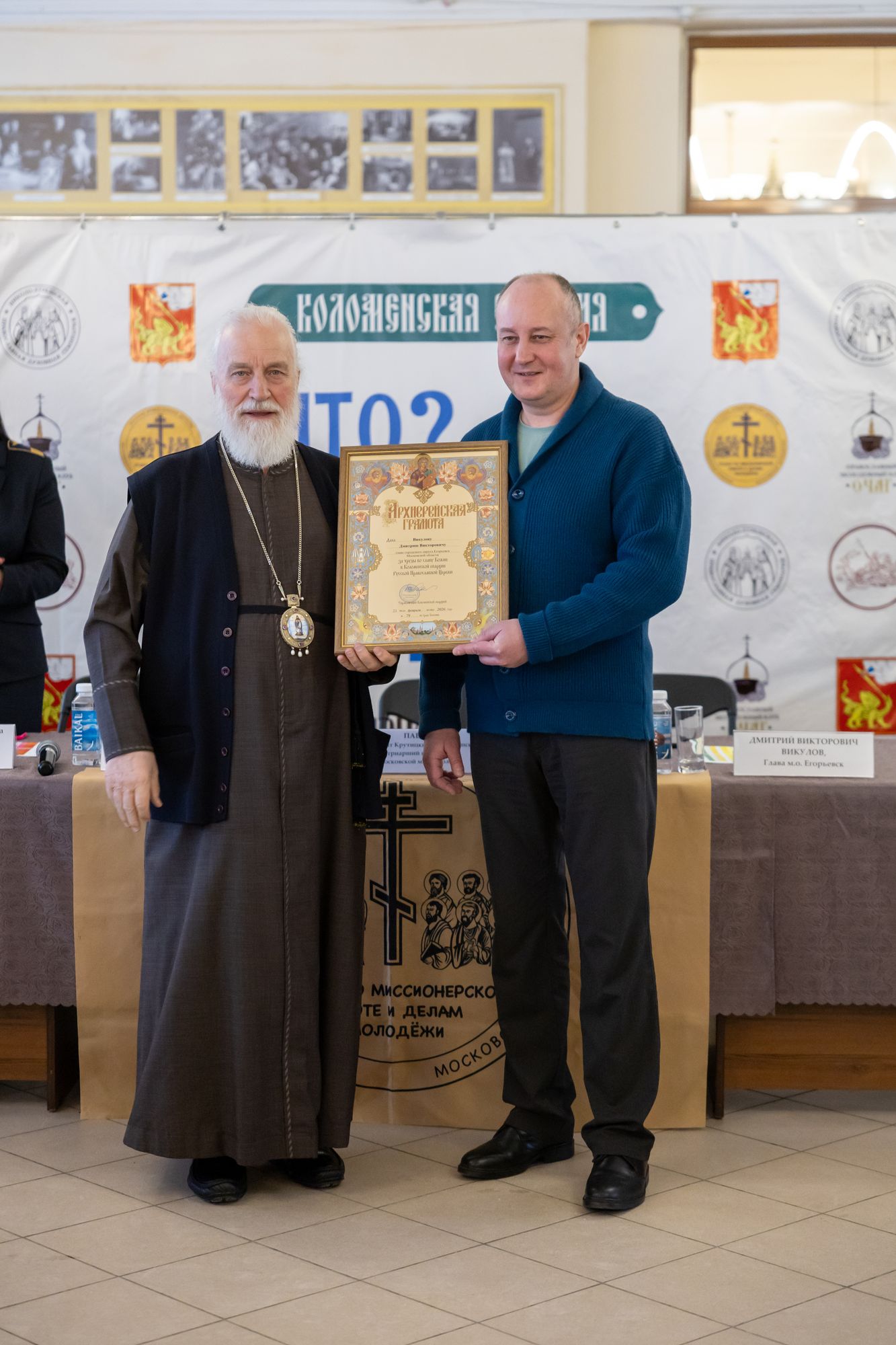 В начале мероприятия владыка Павел вручил Архиерейскую грамоту главе муниципального округа Егорьевск Дмитрию Викторовичу Викулову, а также Архиерейские Благодарности заместителю главы муниципального округа Егорьевск Наталии Александровне Леликовой, благочинному 1-го Егорьевского округа протоиерею Сергию Кожевникову и ответственному за молодёжную и миссионерскую работу в 1-м Егорьевском благочинии иерею Никите Чернышову.