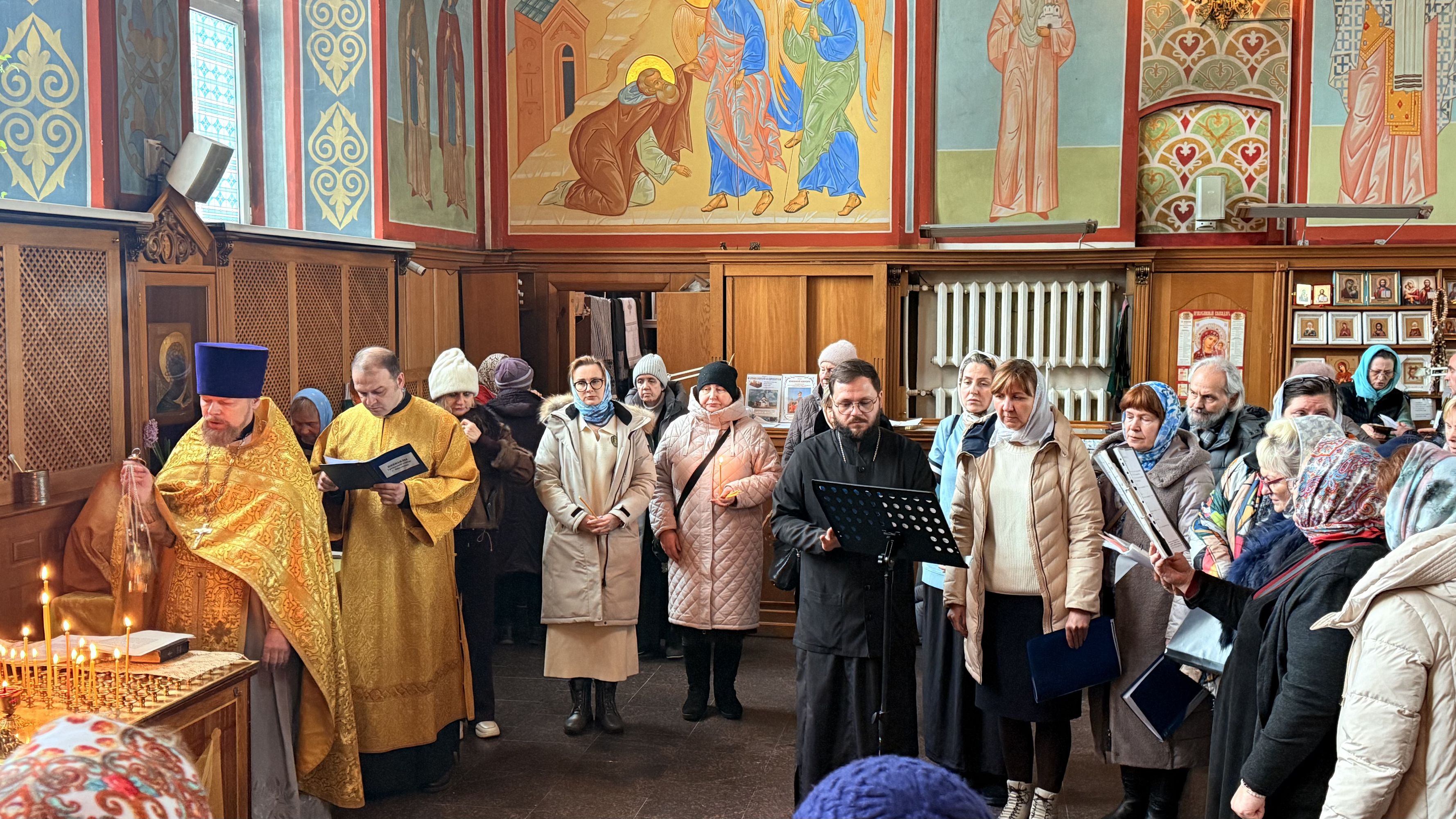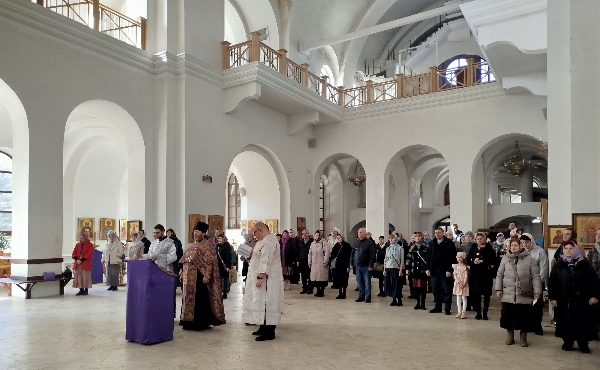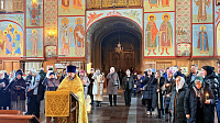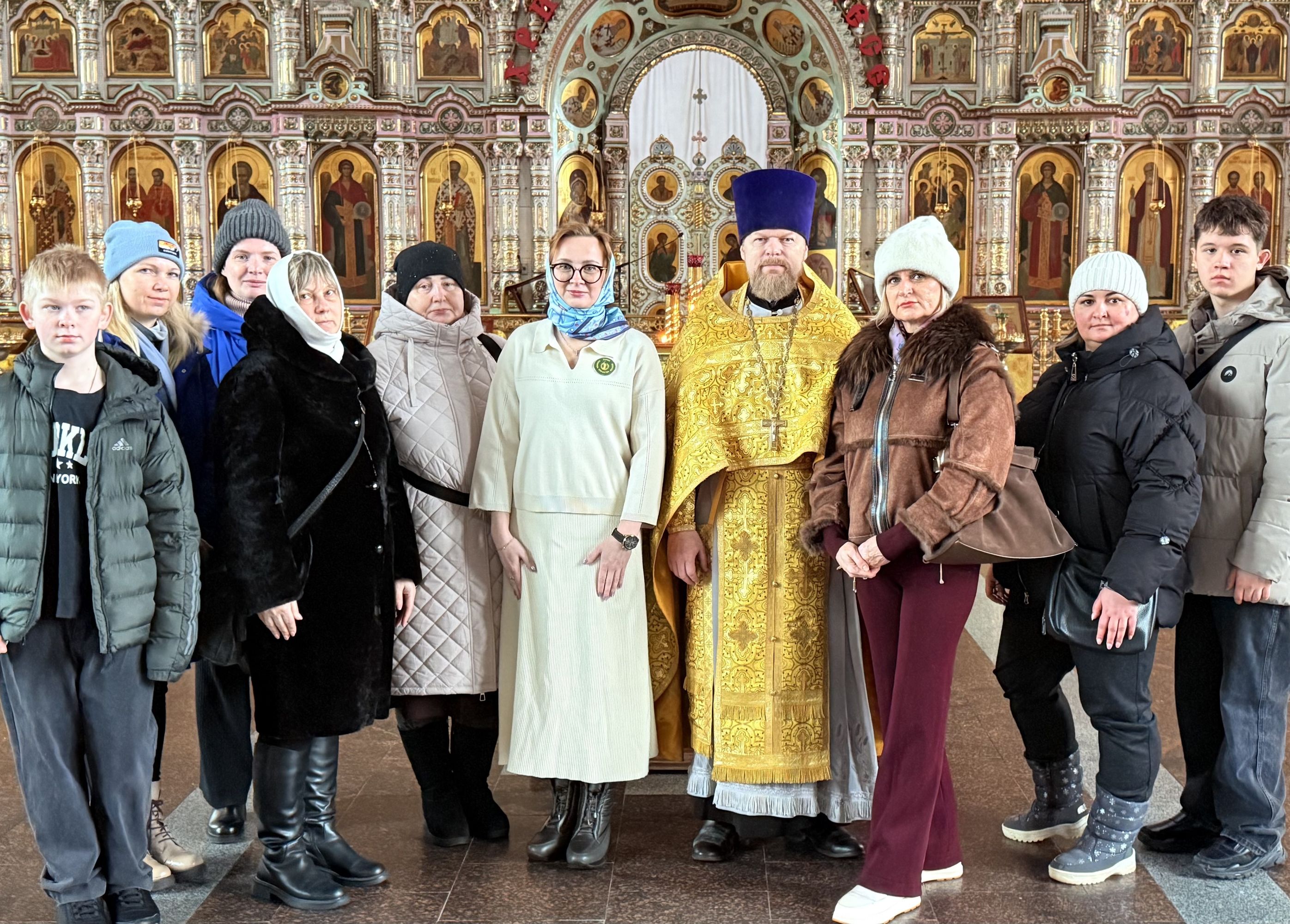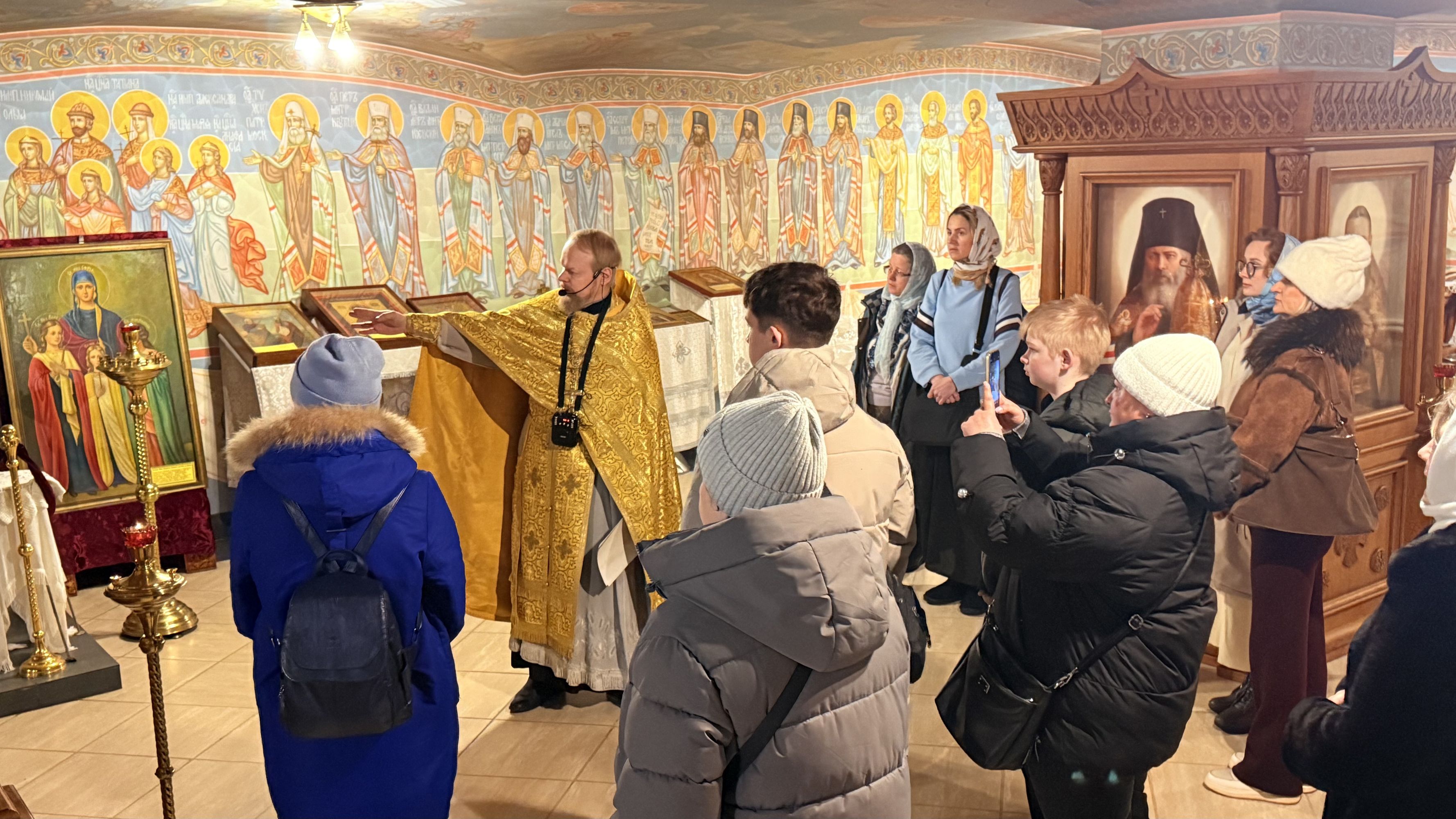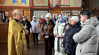 После богослужений батюшка провёл гостям экскурсию по храму, рассказав о его истории и святынях.