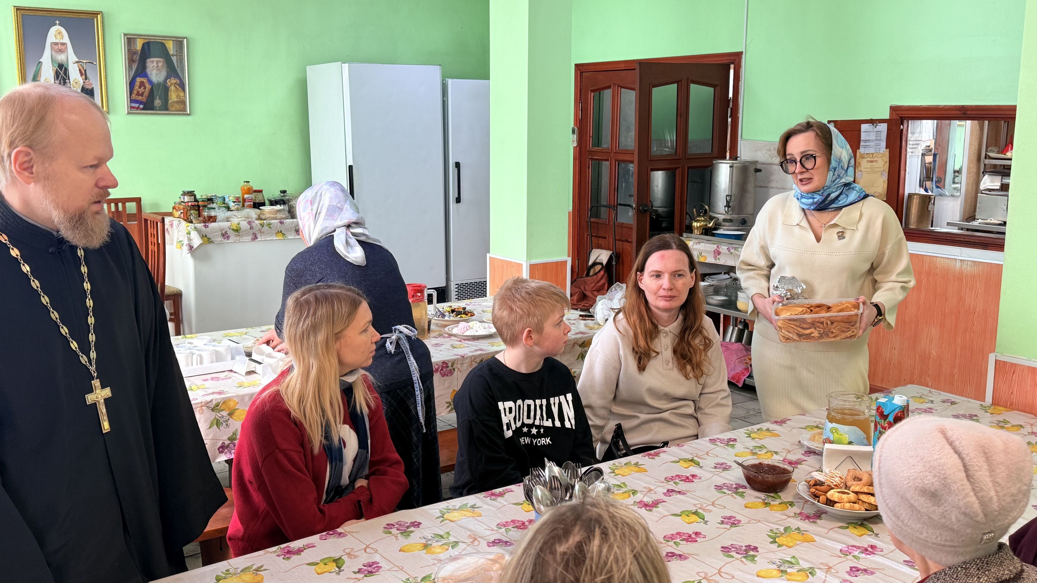 Встреча продолжилась за чаепитием в трапезной Троицкого собора, где собравшиеся поделились переживаниями и получили ответы на вопросы о поддержке семей.
