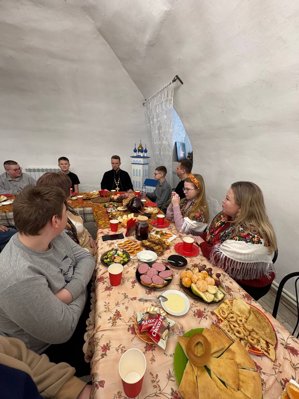 21 февраля состоялась традиционная масленичная встреча-беседа детишек из РОО "Наши особята" и их родителей с благочинным 1-го Бронницкого округа, настоятелем Михаило-Архангельского собора г. Бронницы иереем Сергием Себелевым. Встреча за чаепитием с блинами прошла в подклети собора.