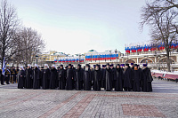 Мы знаем, что сравнительно недавно по историческим меркам военнослужащие, да и все силовые организации, не пользовались тем уважением, которого они заслуживают. Эти времена прошли и, надеемся, никогда не вернутся. А ваше служение, без которого — еще раз повторю — не может существовать независимая суверенная Россия, пусть крепнет и совершенствуется. А для того чтобы были мощными наши Вооруженные силы, надо, чтобы был очень сильный дух тех, кто принимает присягу и готов служить в Вооруженных силах, защищая Родину и благополучие своего народа.