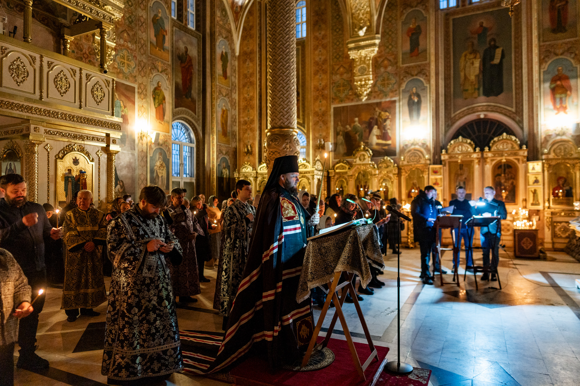 Богослужебные песнопения исполнил архиерейский хор под управлением Ярослава Филипсонова.