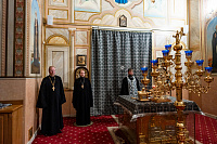 Его Высокопреосвященству сослужили благочинный Серпуховского церковного округа иерей Дионисий Коськин и клирики храма.