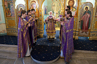 Богослужебные песнопения исполнил соборный хор под управлением Натальи Камышниковой.