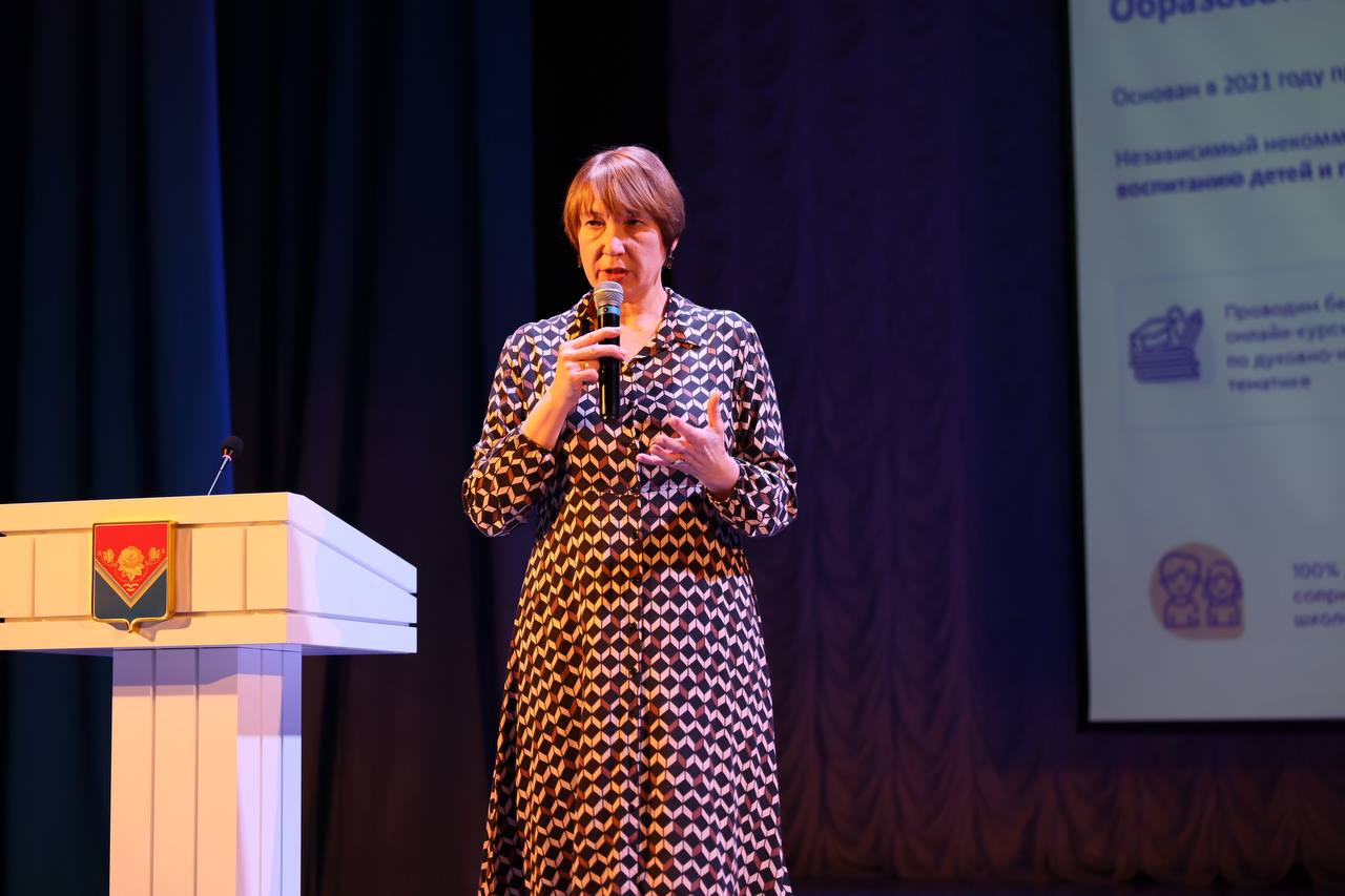 С сообщением на тему «Выбор модуля «Основы православной культуры» учебного предмета «Основы религиозных культур и светской этики» выступила начальник управления развития общего образования Министерства образования Московской области Е. Ю. Пыхтина.