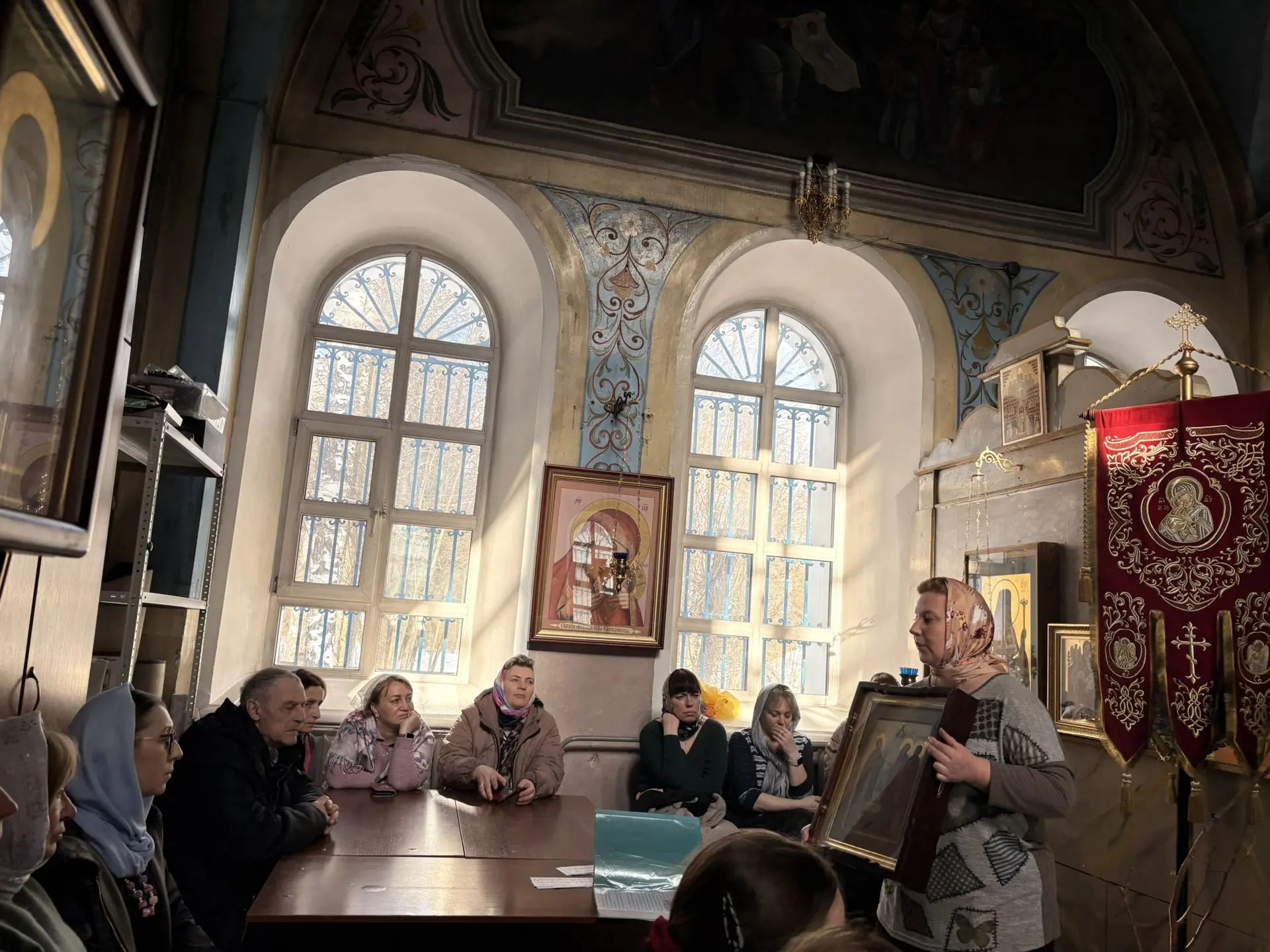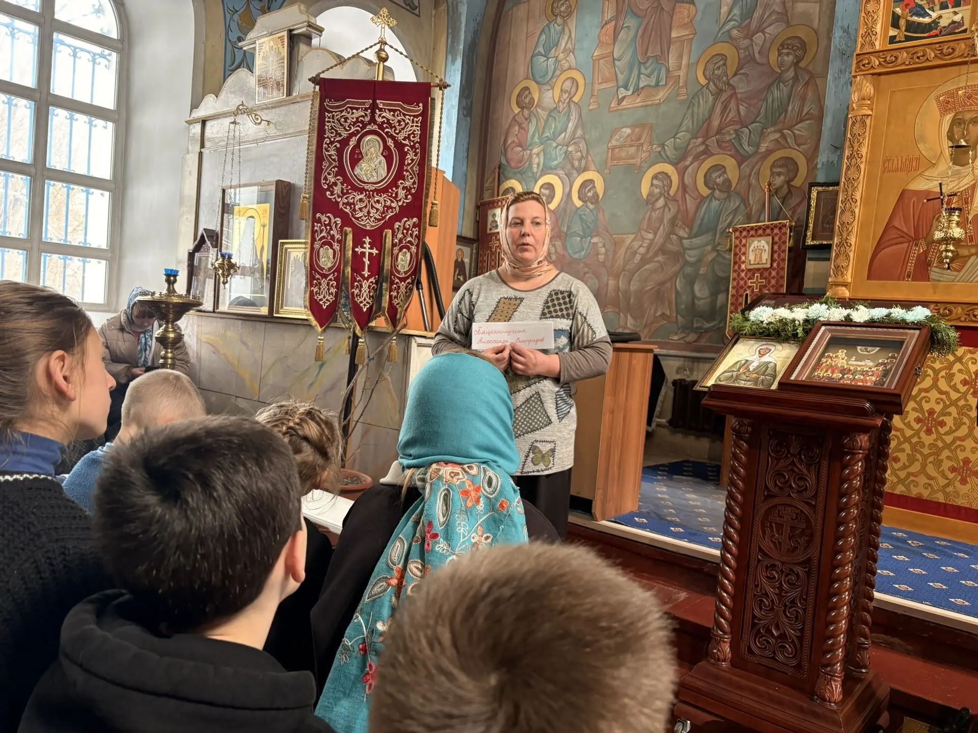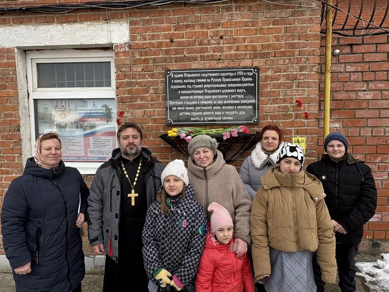 8 марта 2026 года для учащихся детской и взрослой воскресных школ Знаменского храма д. Алёшино состоялся урок, посвящённый памяти святых новомучеников храма: священномученика Александра Виноградова и преподобномучениц Антонины (Новиковой) и Надежды (Кругловой). По завершении урока учащиеся вместе с настоятелем храма иереем Романом Теребилкиным почтили память всех новомучеников Егорьевских и возложили цветы к мемориальной доске на стене УФСИН СИЗО-7 м.о. Егорьевск.
