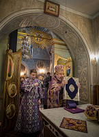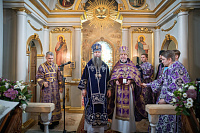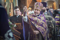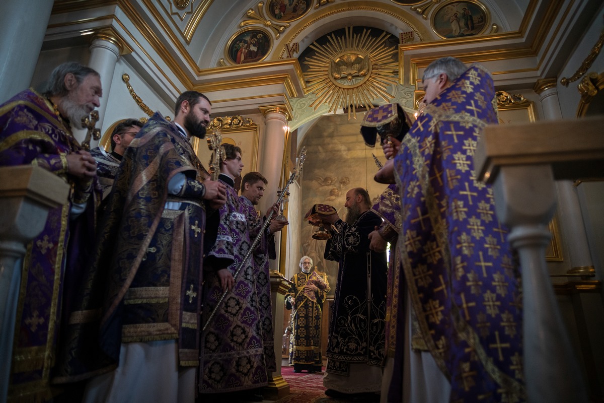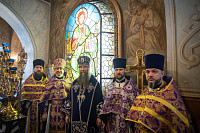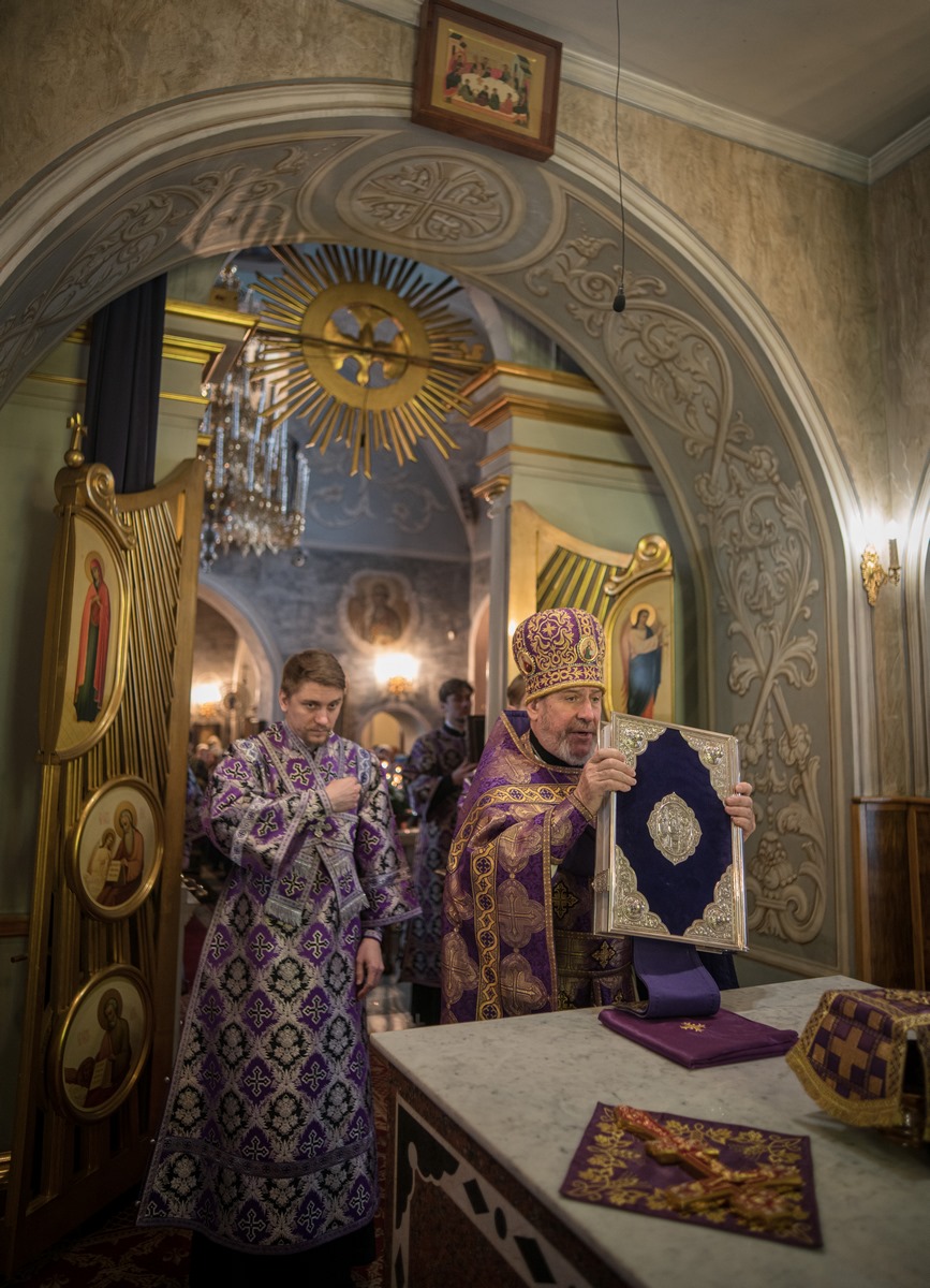 9 марта 2026 года, в понедельник 3-й седмицы Великого поста, праздник первого и второго обретения главы Иоанна Предтечи, епископ Сергиево-Посадский и Дмитровский Кирилл возглавил Литургию Преждеосвященных Даров в Петропавловском храме в Химках.